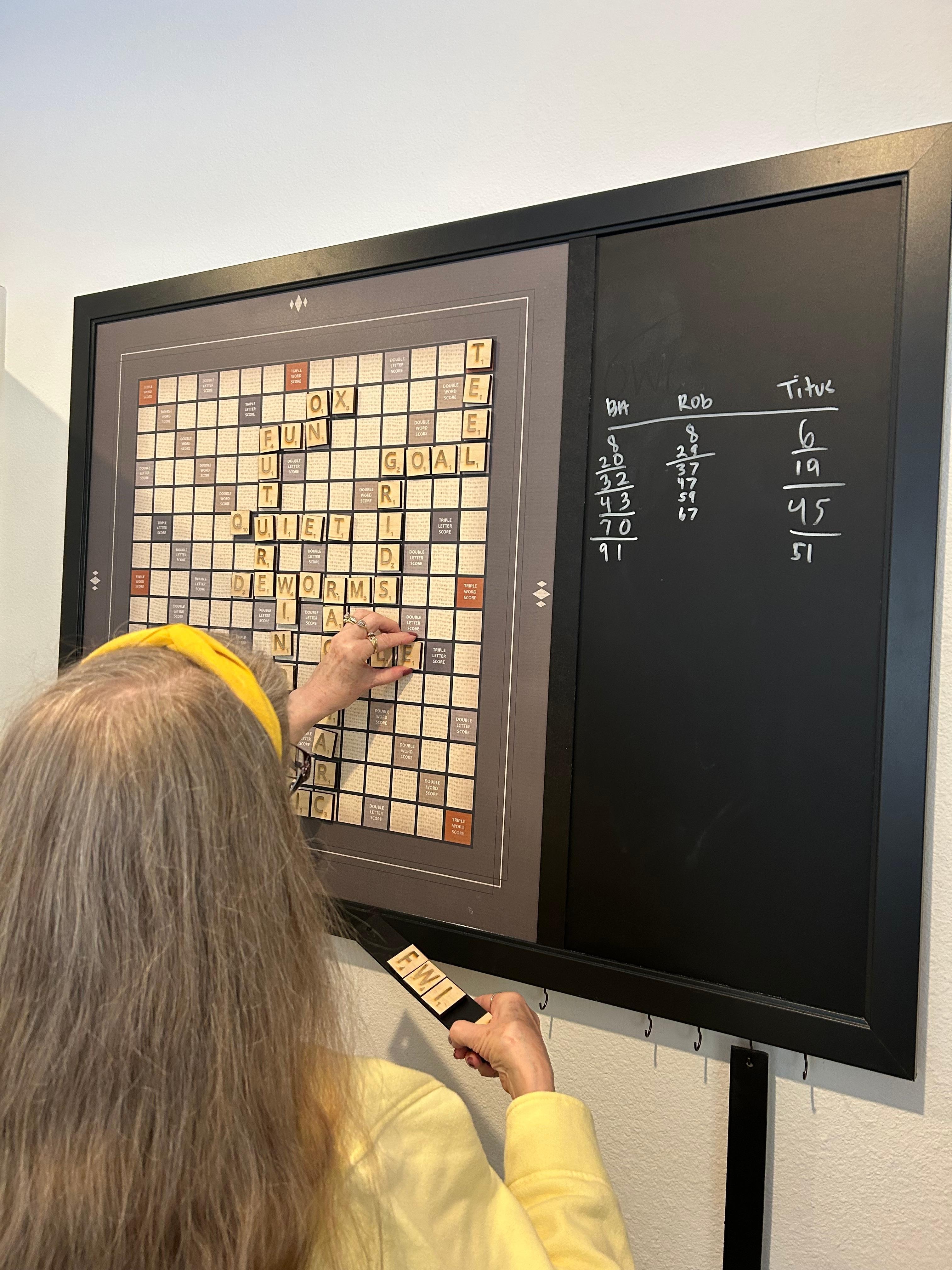 The lower level is built for entertainment. It includes a completely separate kitchenette with sink, fridge, dishwasher and full coffee station featuring a Nespresso and French press. A professional shuffleboard table, a poker and game lounge and large wall-mounted Scrabble game make the space perfect for family fun. There is also a 55" canvas TV, comfy queen sofa bed and multiple cozy seating options.