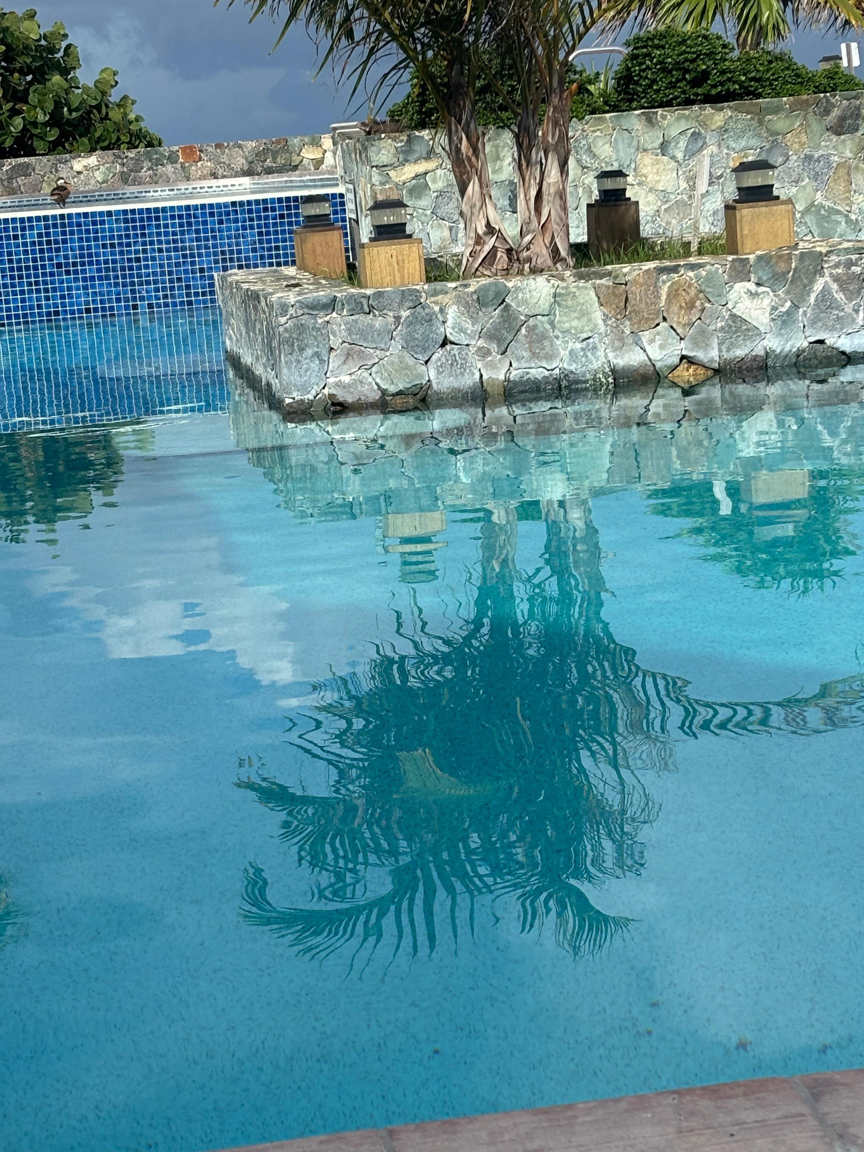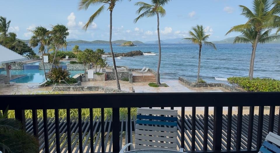 Our condo is located between two beaches and just steps from the spectacular bi level pool. The view of St. John and other islands is spectacular. This second floor condo offers privacy and relief from blowing sand.