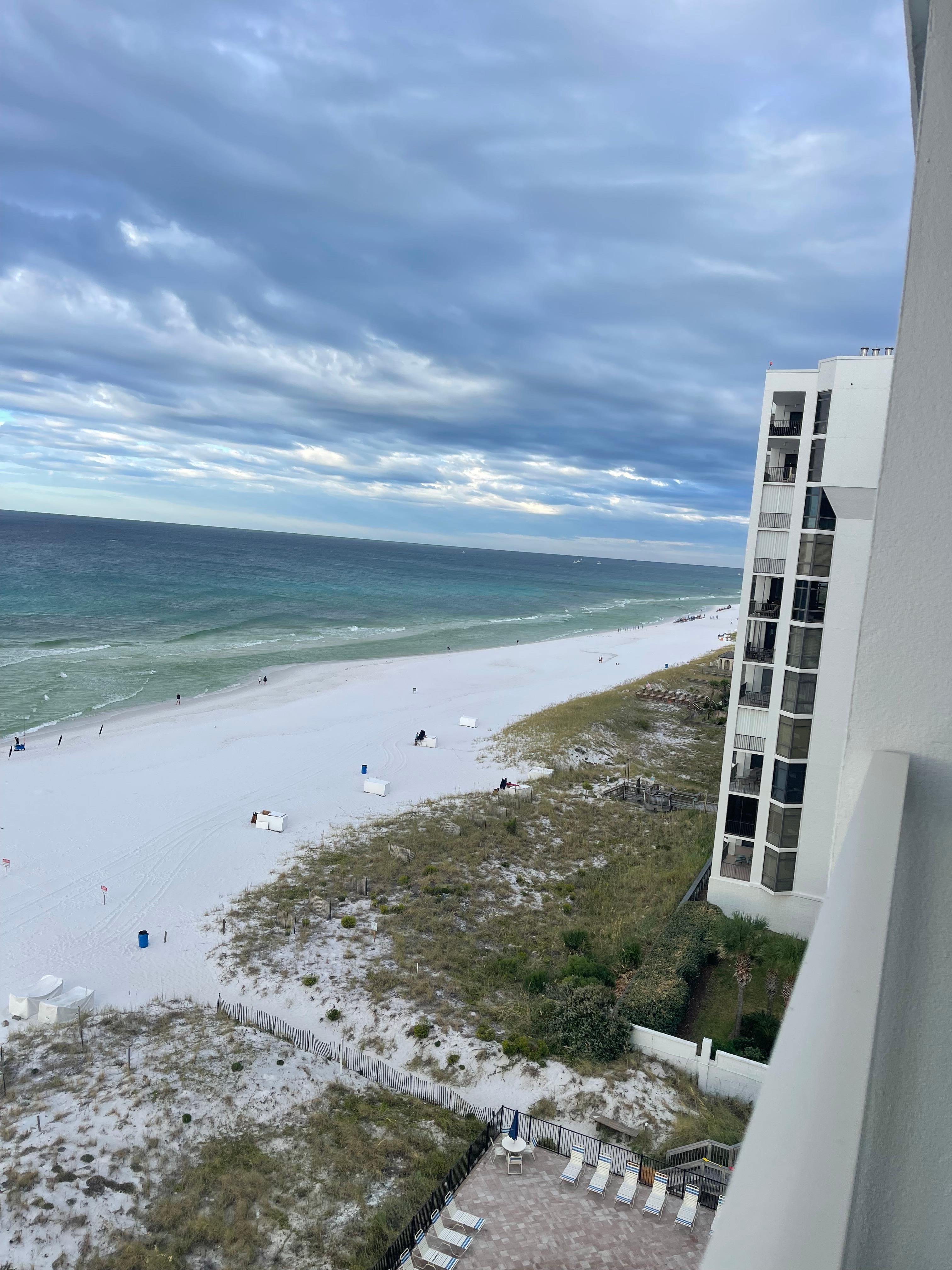 Updated 10th floor condo sits right on beach! Gorgeous full view of the Gulf where you can see dolphins from our balcony. Beautiful updated beach decor.