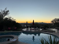 Beautiful home in the foothillsSundance in the foothills is a beautiful home with incredible views. Five adults in my family spent 6 days in Tucson at the Gem & Mineral show. The winter weather wasn’t conducive to using the pool, hot tub, or outside kitchen and dining areas. Those areas are beautiful and well maintained. We did use the outside areas to enjoy the incredible sunsets and view of Tucson. Although we did not cook any meals, the kitchen is well equipped. The seating at the kitchen peninsula was an ideal place to gather and make plans for the next day. After spending 8-10 hours walking it was wonderful to enjoy a hot shower. The upstairs bathrooms are large and the dials on the shower allow you to set the temperature of the water to your preferred temperature. Additionally, the patios outside of the two large bedrooms were great places to enjoy the sunrise/sunsets. Sundance is a great place to stay and the next time we visit Tucson it will be at a time that we can take advantage of the pool and outside areas.
