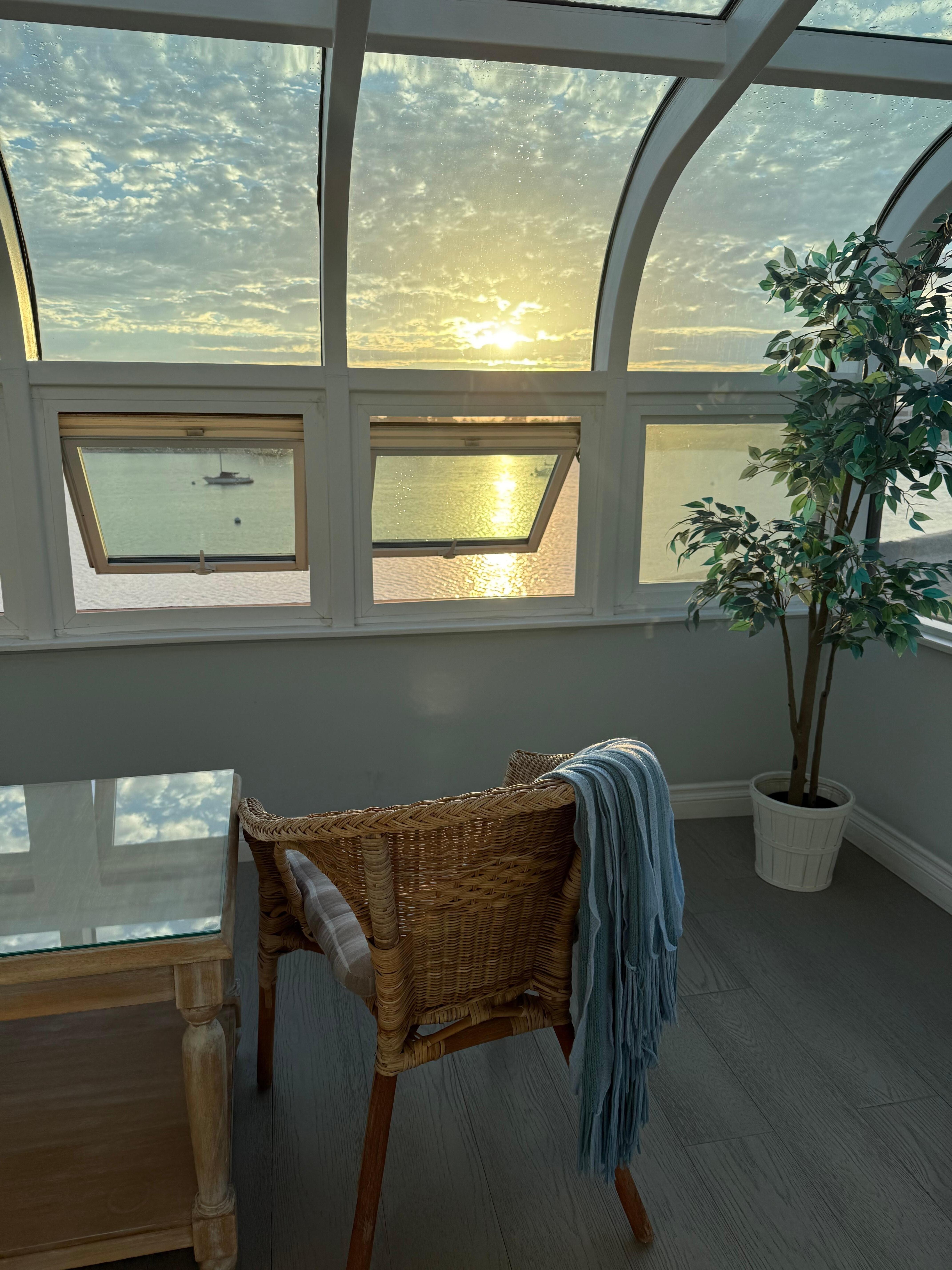 There is a beautiful glass atrium leading off the master bedroom, which is a place where you can sit and work at a desk or relax and read a book, while looking out over the beautiful Bay.