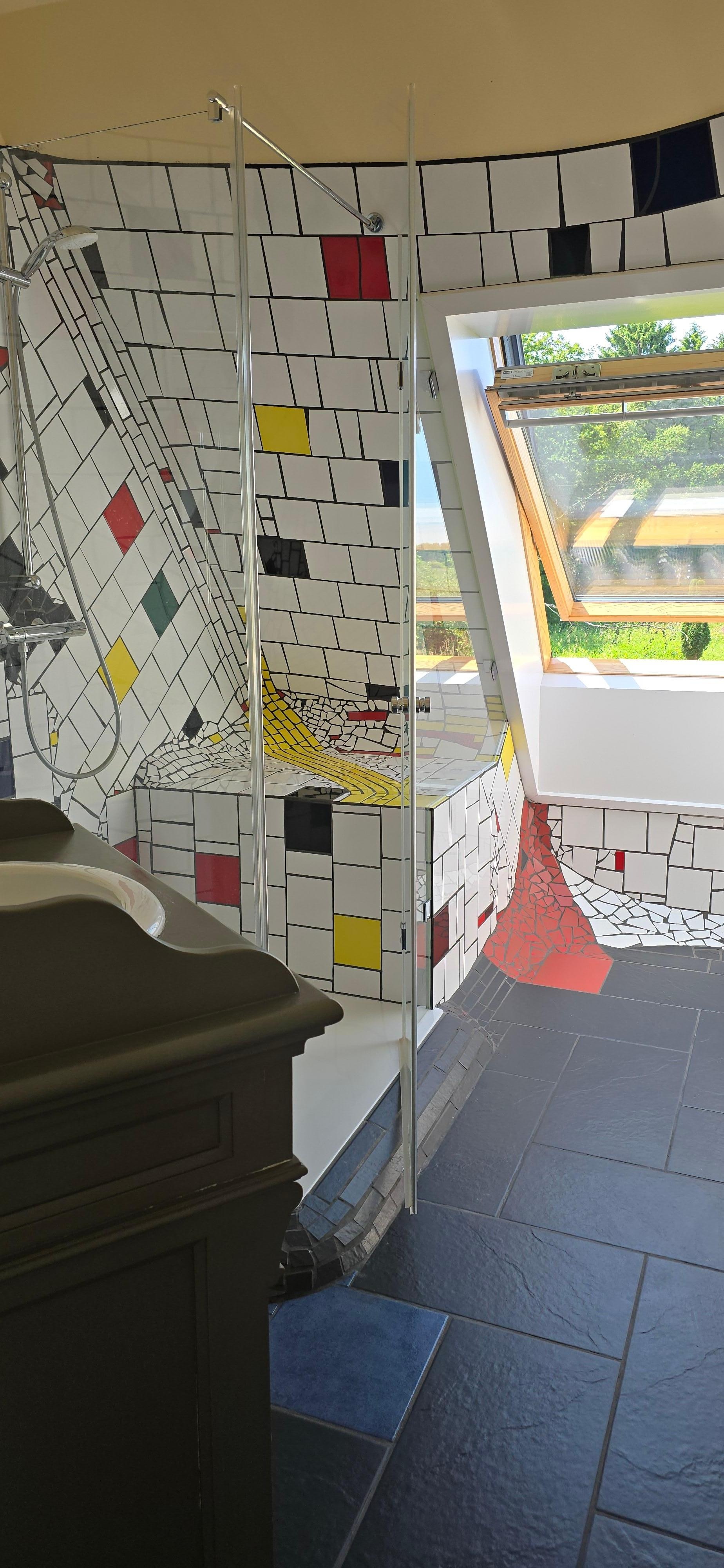 Das Haus ist Innenarchitektonisch und künstlerrisch ein Hightlight. Hundertwasser trifft auf Mondrian und ein wenig Bossard. Großzügig und wirklich für 12 Leute geeignet. Genügend Geschirr und Besteck , eine wiklich geeignete Küche mit viel Stauraum. Der Badesee aus der Anzeige ist kein allerdings kein Badesee und leider fehlte der Sonnenschirm, wenn auch ein Schirmständer da war. Bei dem mega guten Wetter, welches wir hatten, wirklich schade. Kleinigkeiten wie ein Wasserkocher und Geschirrspülmittel fehlten. Nichts Welt bewegendes also Insgesamt wirklich ein geniales Haus, weit ab von allem, in mitten von Natur und Feldern um zu entspannen und Alltagshektik auszublenden.
