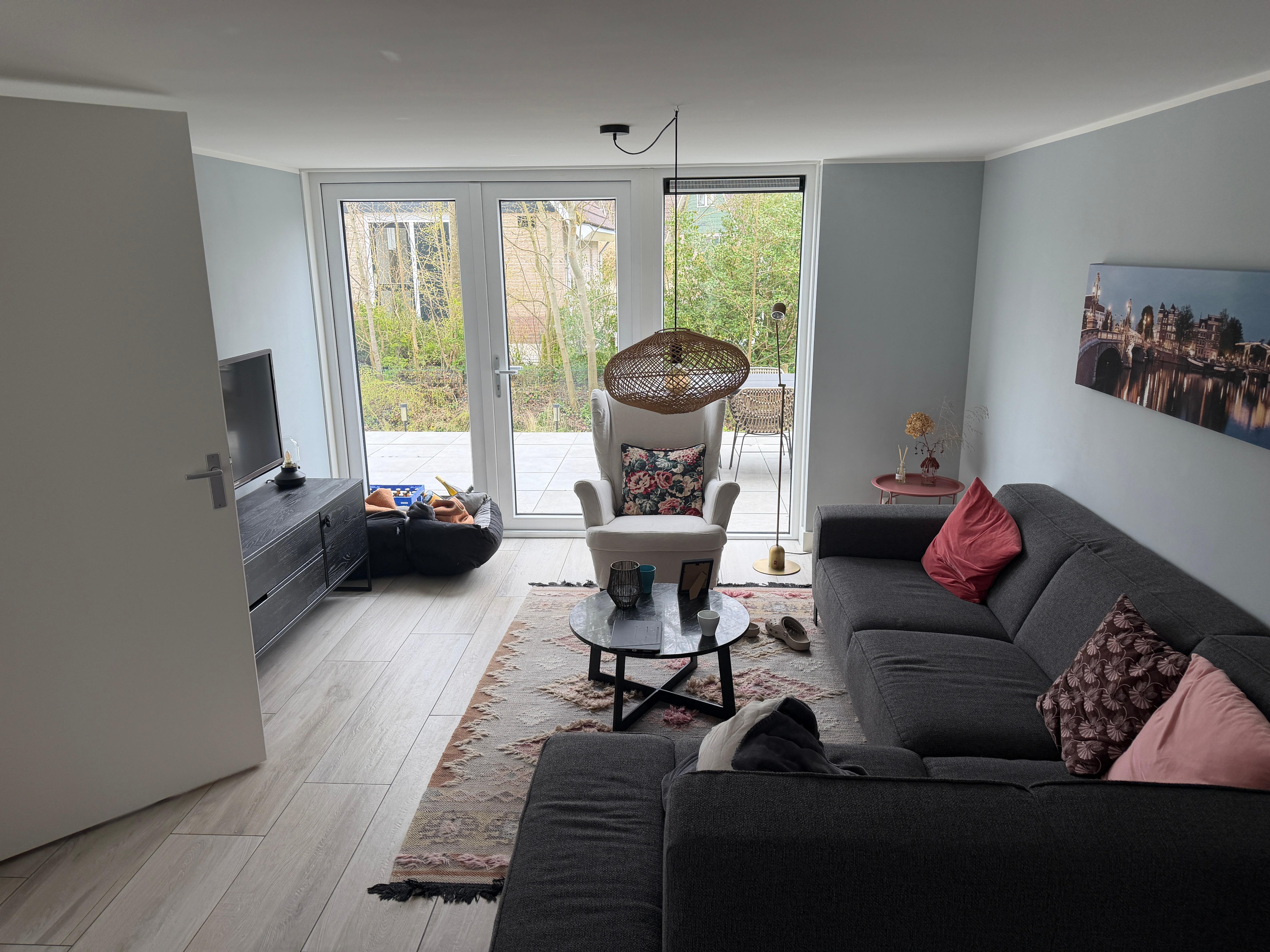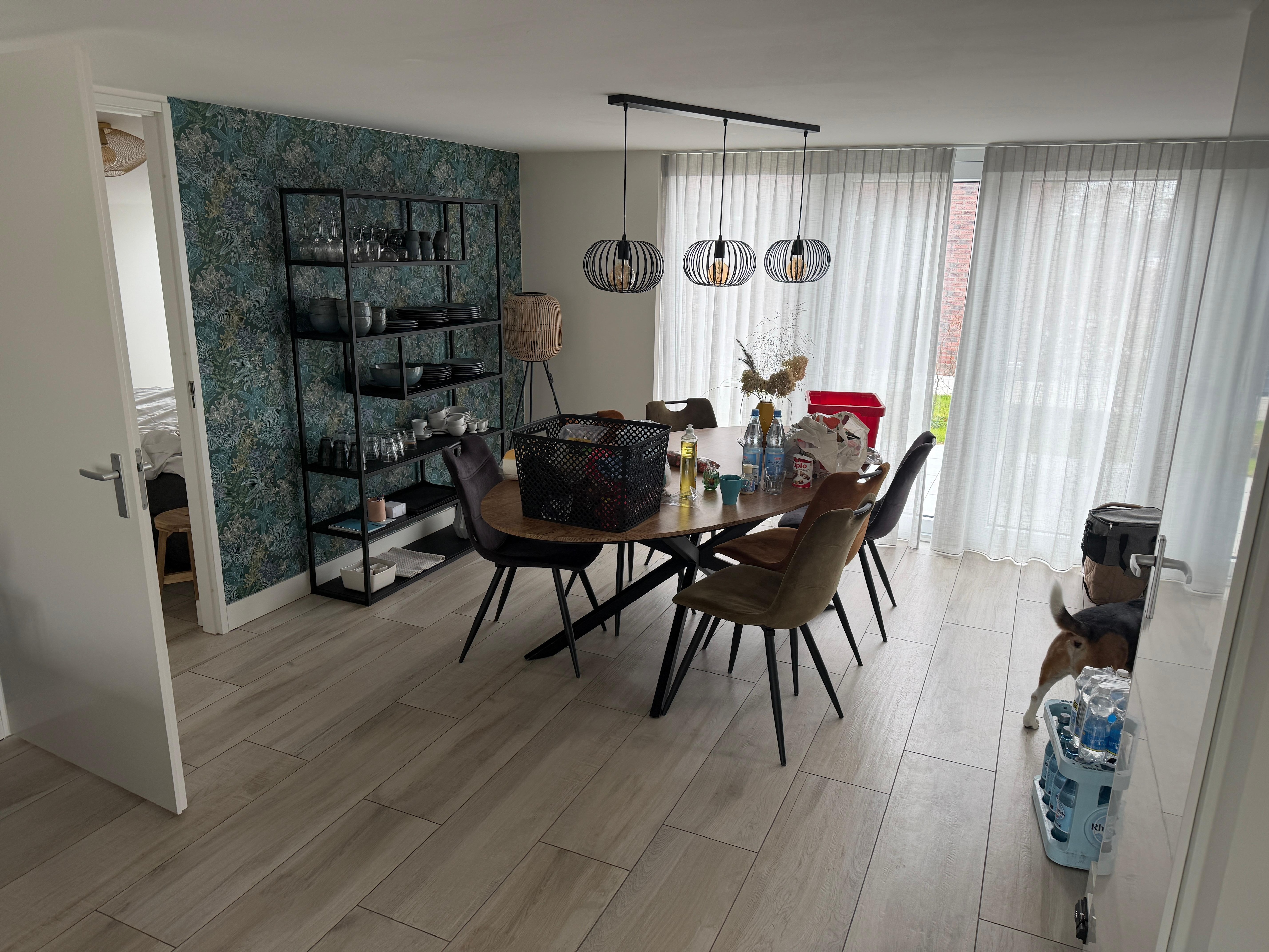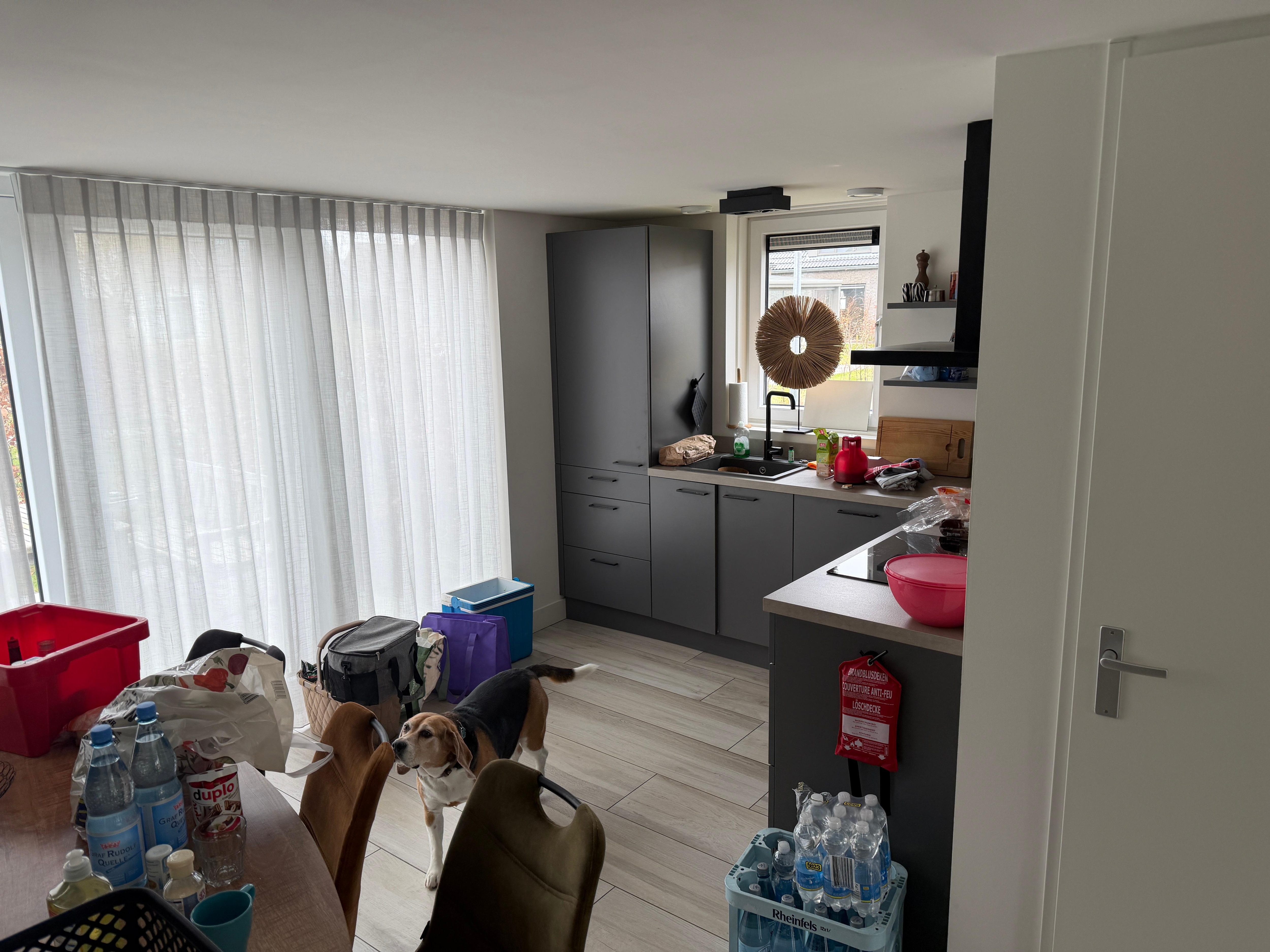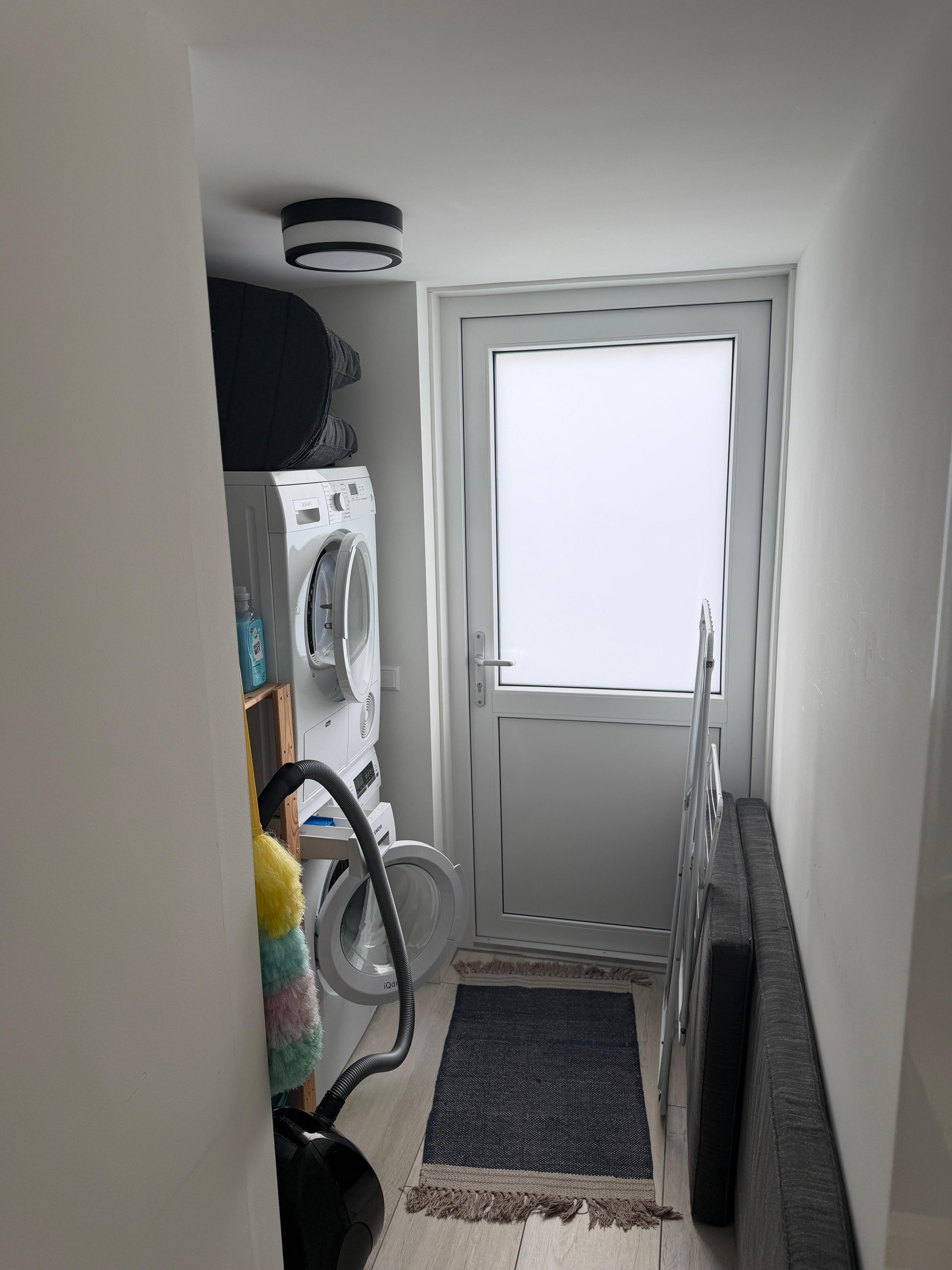 The modern and well-equipped kitchen has all the appliances you need. There is a dishwasher, oven, Senseo coffee machine (also a coffee pot with hand filter), kettle, fridge with freezer compartment, induction hob, plenty of cutlery and a large set of crockery. There is a washing machine and dryer in a separate room.
