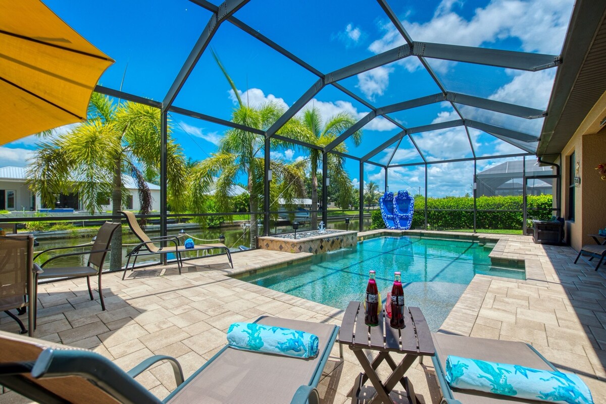 On land, the villa offers the right mix of tranquility and a central location. The supermarkets Publix and Walmart are only 2 miles away – as are the shops and restaurants on Cape Coral Parkway. In 5 minutes, you can reach Camelot Park with its playground. Or do you want to cool off? Then, Sun Splash Family Waterpark 7 miles to the north is perfect for you.