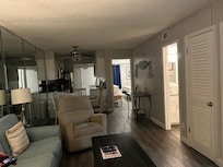 The living room has floor to ceiling sliding glass doors showing a stunning view of the sugar sand beach and sparkling blue waves below. From the balcony you will enjoy watching the activities on the beach, the red sunset or taking a nap listening to the methodical rolling of waves against the shore.