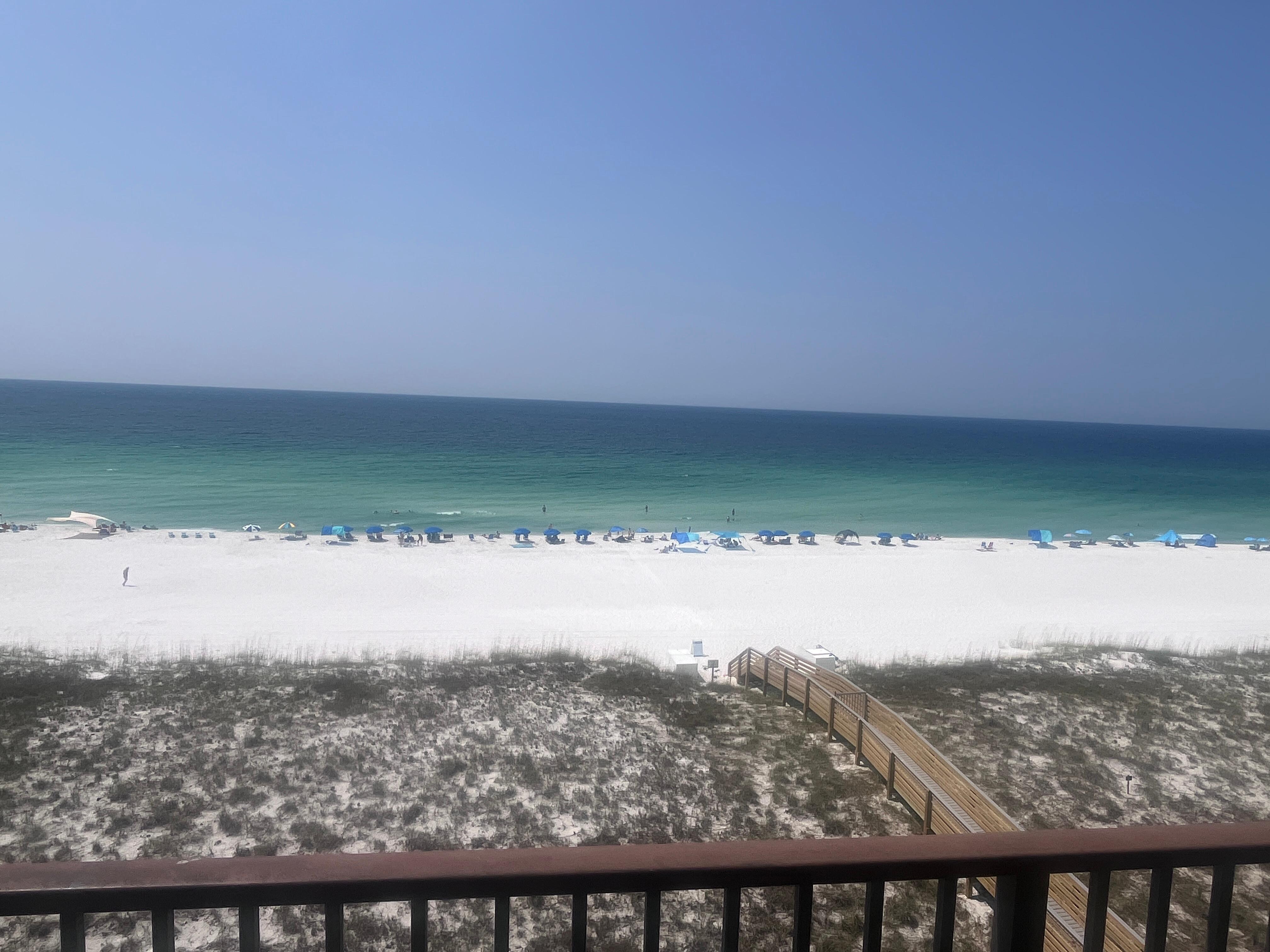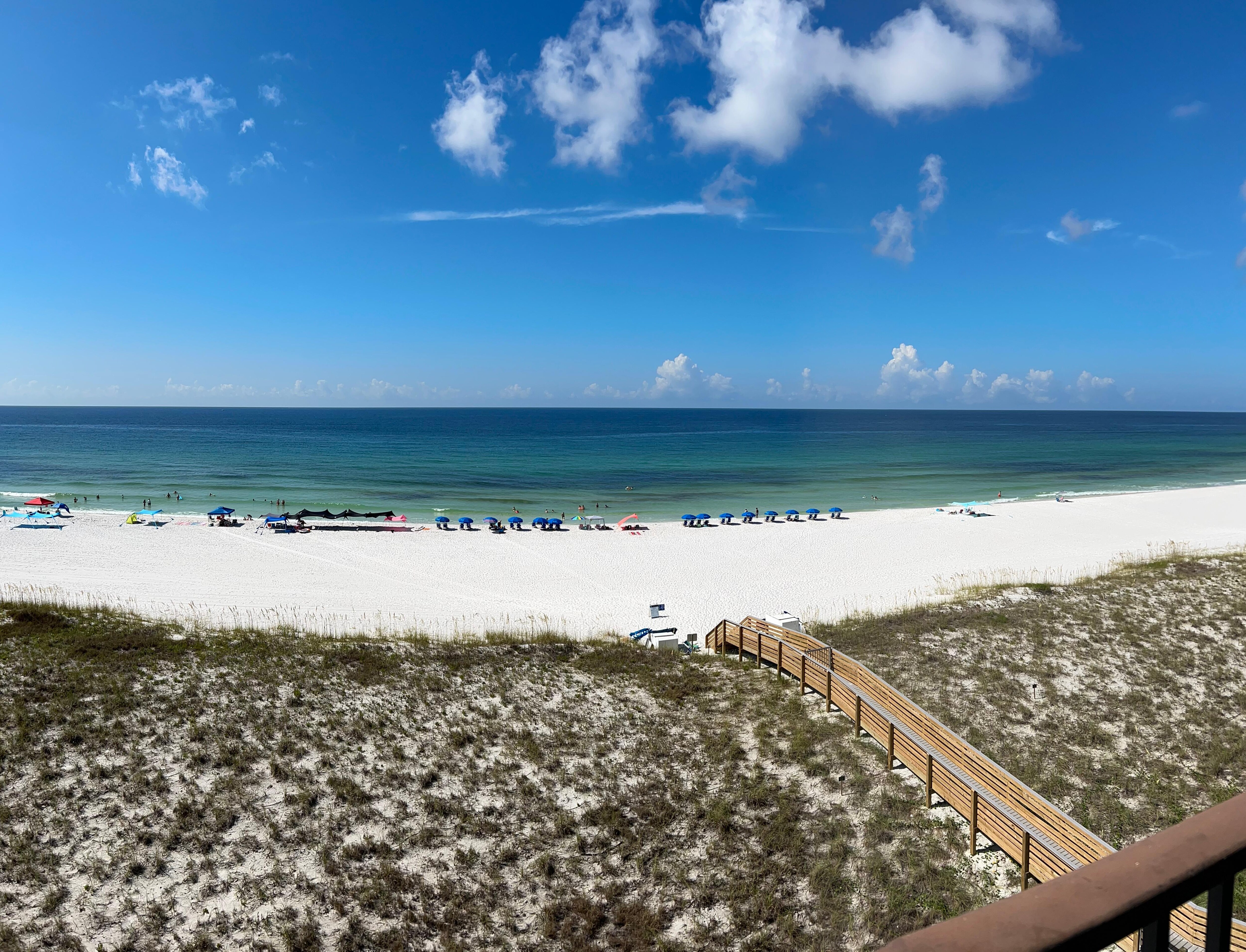 Enjoy a panoramic view of the Gulf of Mexico from the 5th-floor balcony of 503, a two-bedroom, two-bath top floor condo situated on a quiet stretch of white sugar-sand beach. We have a driftwood style tile floor throughout with area rugs and have a king-size bed in each bedroom and a queen sleeper sofa, making 503 perfect for two couples or a family. Both master and hall baths have 5-foot wide, step in showers.