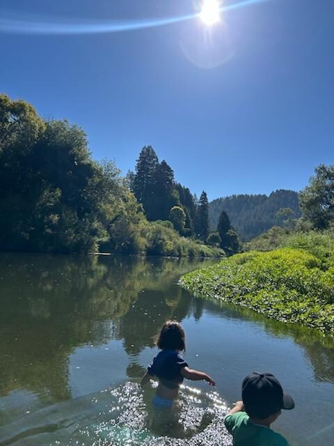Our riverfront getaway is completely updated so you can conference on hi speed WIFI then walk to the deck and watch osprey fishing in the river. The full kitchen has new stainless steel appliances including dishwasher, microwave, washer & dryer. Cooks will find the kitchen lacking for nothing. The handicapped access bathroom has extra large shower with built in chair. Our 2 bedrooms each have queen bed, perfect for 2 couples or a family with children. There is a fold down sofa in the living room which sleeps 2 small people, or 1 big person. The large deck overlooks the river with a gas grill for entertaining and dining alfresco for 6. We have an outdoor firepit with seating for 6. The house comes with parking for 4 cars. We install a seasonal river access of stairs every May - October. The water between the bank and island is usually very in the summer, but the mail river channel on the other side has water and a sandy beach year round. Perfect for kids to play in! Be sure to bring your water shoes, the beach is rocky. We provide life vests, sun umbrellas, camping chairs and float toys. We have comcast xfinity WIFI internet service in the cabin along with a smart TV, DVD player, WII consul + Games. Everything you need for a fun river vacation! Below the space is an separate efficiency which is never rented out, but may be used by family occasionally so the outdoor space may be shared.