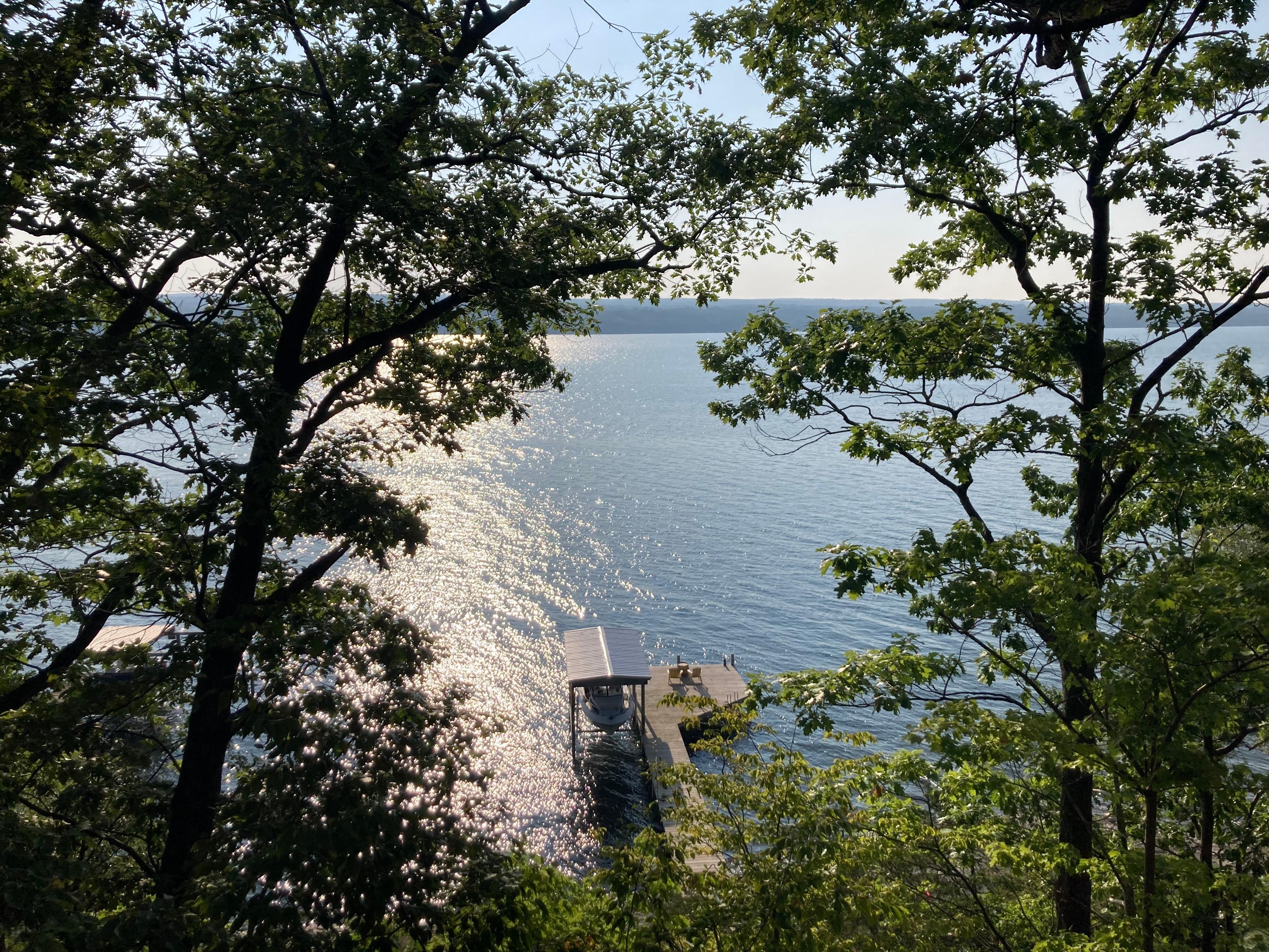 1 minute walk down the stairs to the beach or drive down for unloading kayaks, coolers or a small boat trailer. We highly suggest that guests have “AWD or 4WD” if driving down to the beach. Fire pit, depending on the supply and the season there is wood but it’s best to bring your own wood. It can also be purchased from several roadside stands Umbrella and chairs provided. RESPECTING OUR GUEST PRIVACY, owners would not be using the beach in the evening with the exception of loading or returning their boat to the lift.