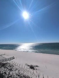 Enjoy the white sands and crystal blue waters of Perdido Key, FL in this 1 bedroom, 1 bath condo located directly on the beach! Take in breath-taking views of one of the most beautiful beaches on the Emerald Coast from our spacious 6th floor balcony. Other Amenities include; beachfront pool, exercise room, washer and dryer in the unit, hallway bunks for small children, queen sleeper sofa in the living room, extended cable tv with music channels, 2 flatscreen tv's, a fully stocked kitchen, free wifi, and keyless Kaba lock entry for easy access.
