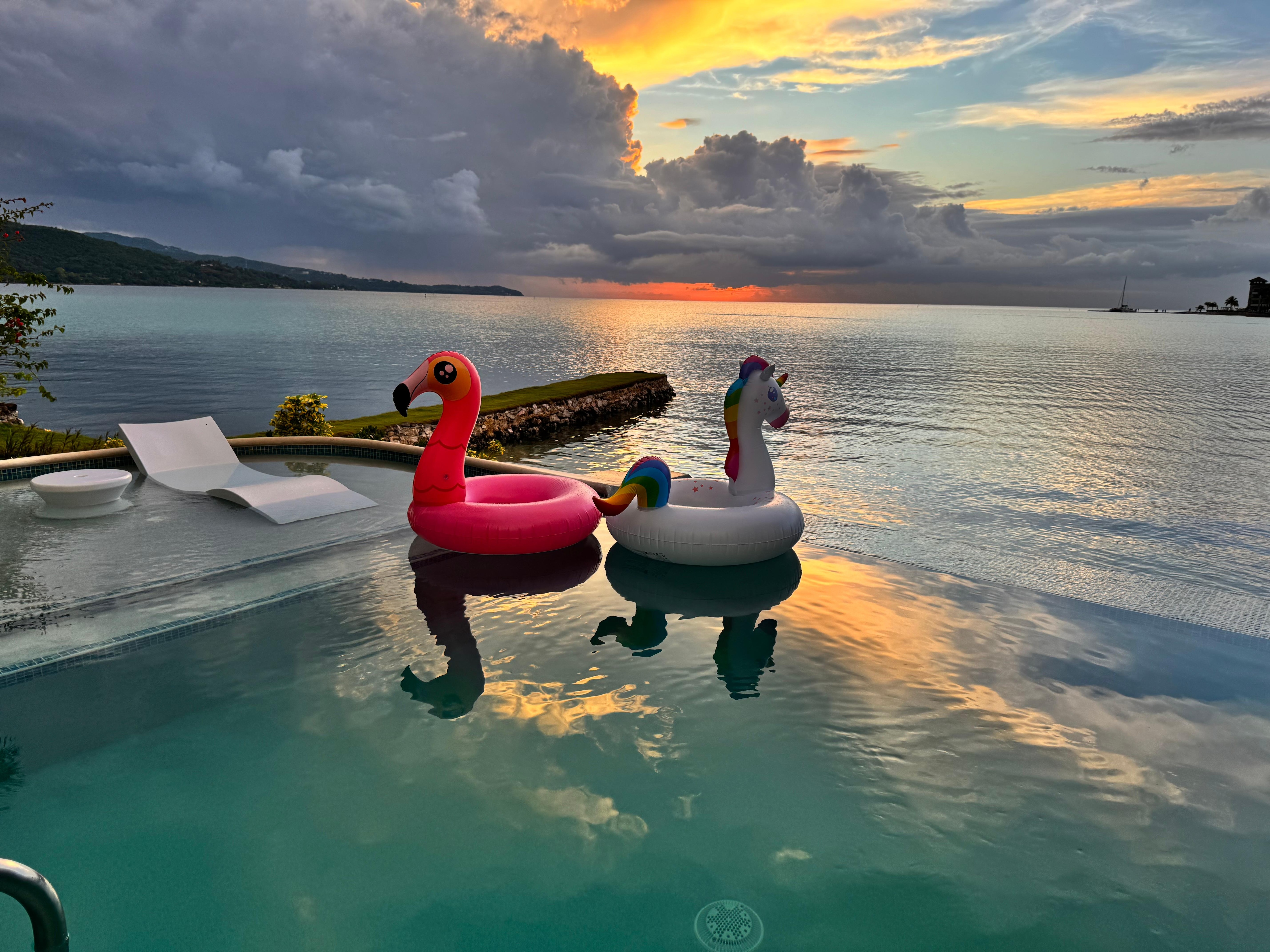 For swimming in the sea, we recommend a short boat or car ride to Doctors Cave Beach or a short walk to the private residence beach (formerly Hard Rock Beach Club).