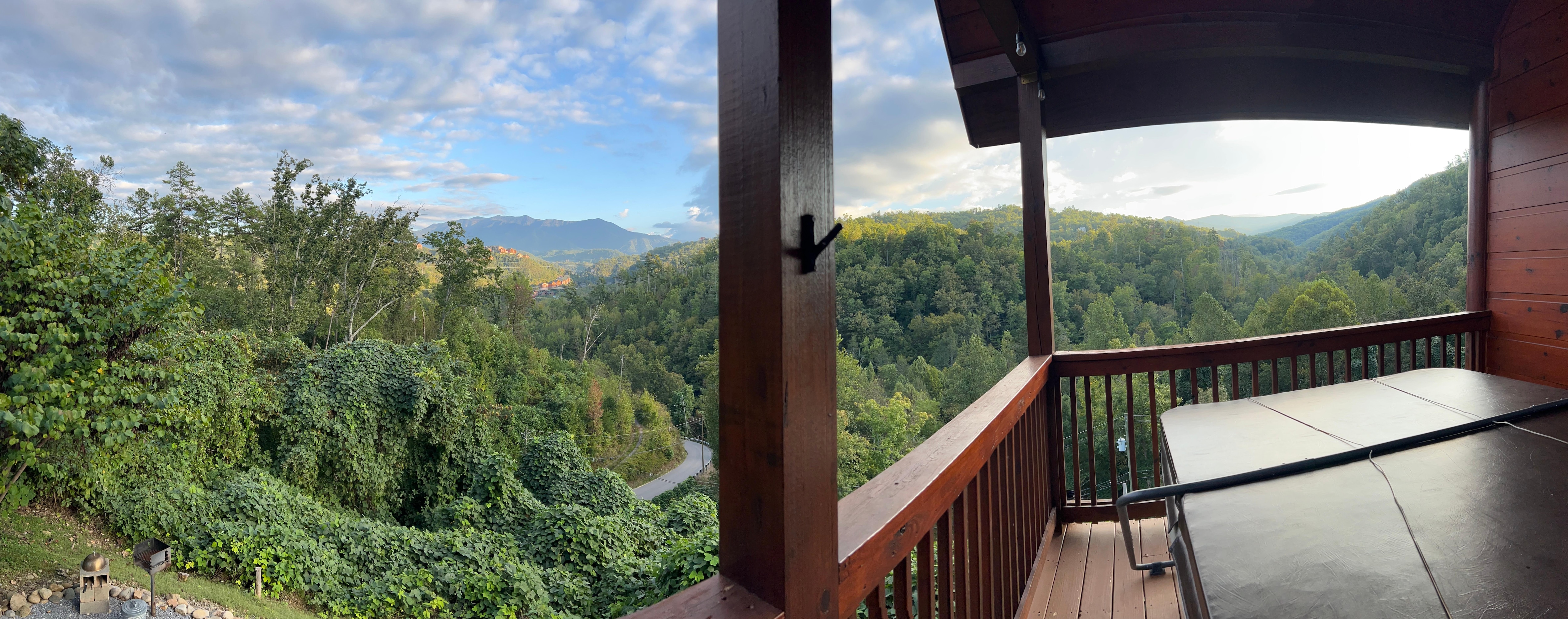The large covered deck faces Mt Le Conte and offers spectacular views. Sit back in the Adirondack rockers or soak in the new Viking Spa. This is one of the best seats in the house!