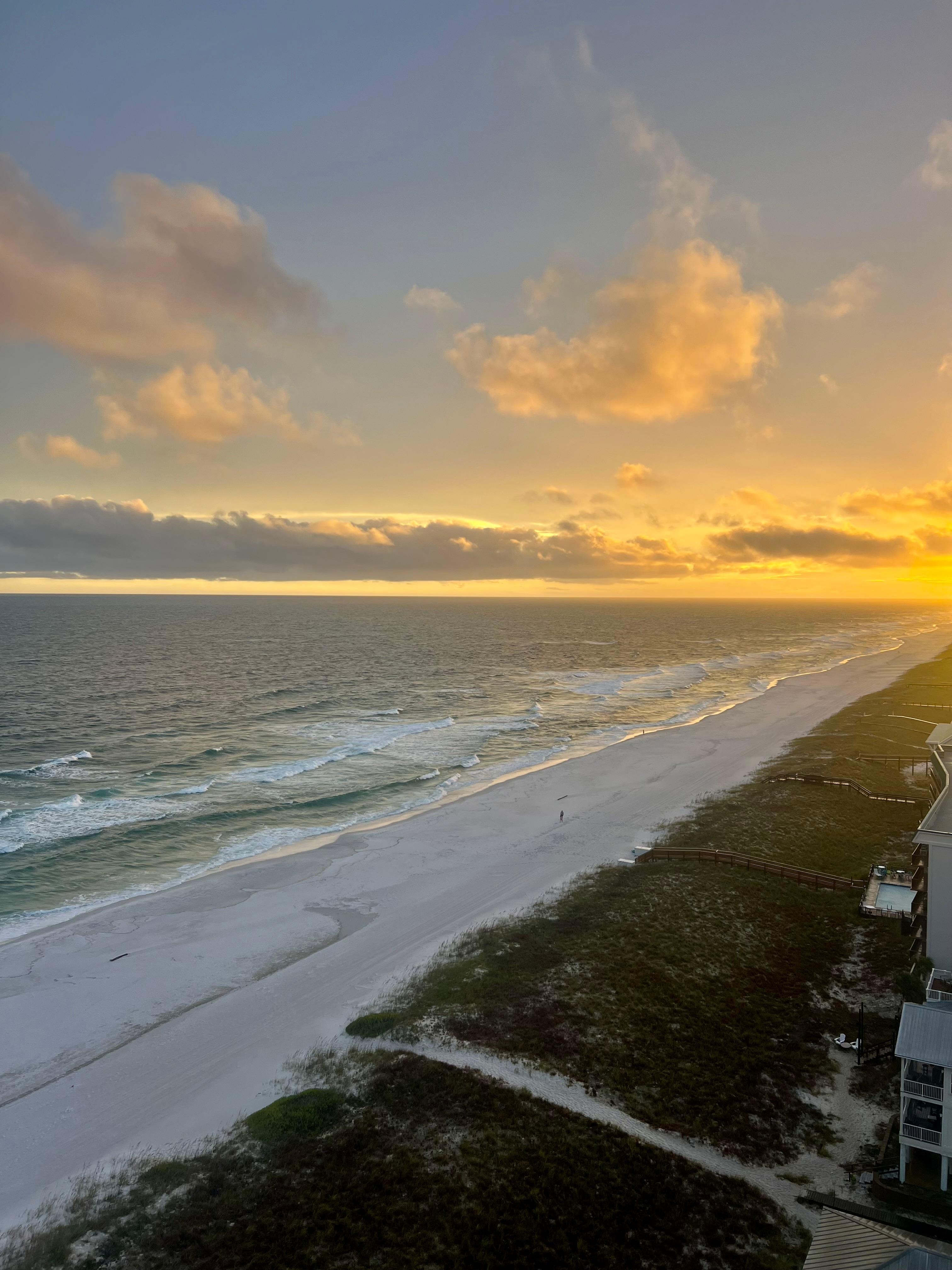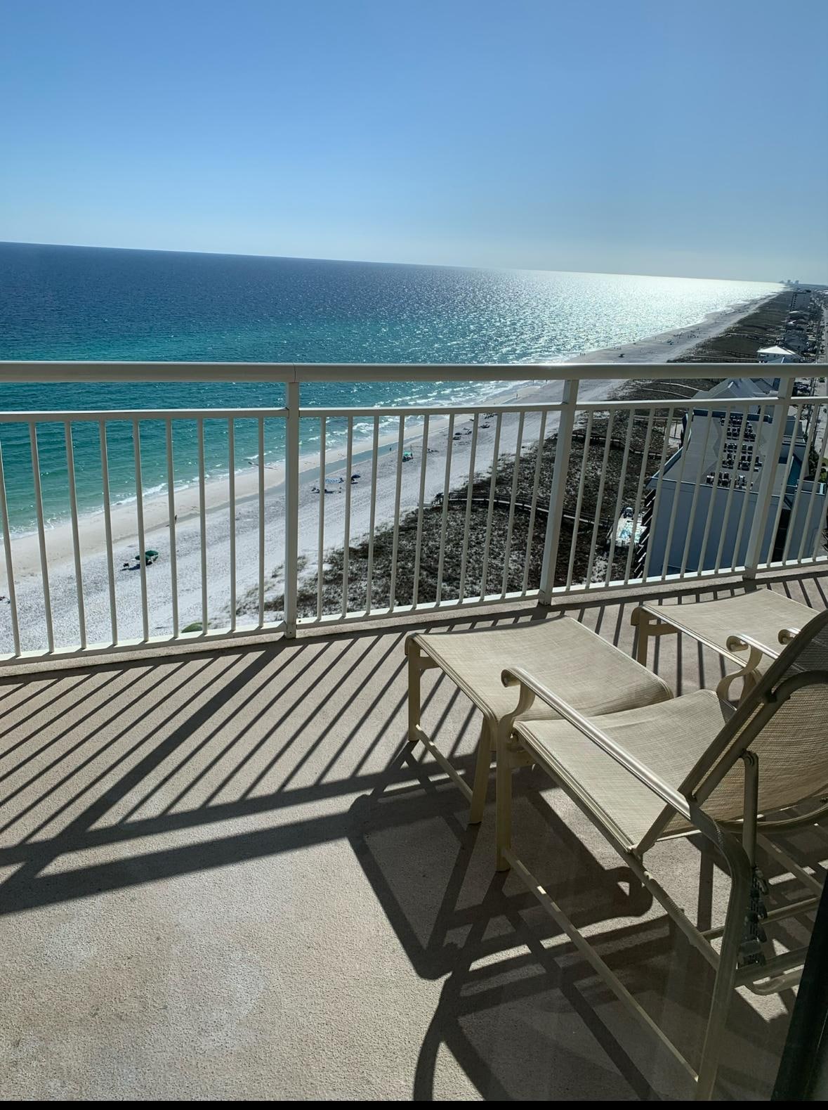 One of the largest 3BR/3BA condos on Navarre Beach. 2 Gulf front bedrooms with floor to ceiling glass for unobstructed views across the Gulf and down Santa Rosa Island. Access the private Gulf front balcony from the great room and two bedrooms. From the balcony you will see breath-taking sunrises and sunsets over the Gulf throughout the winter season, sunsets over the Santa Rosa Sound in summer, and rolling dolphin all year round. The third bedroom has a nice Sound view.