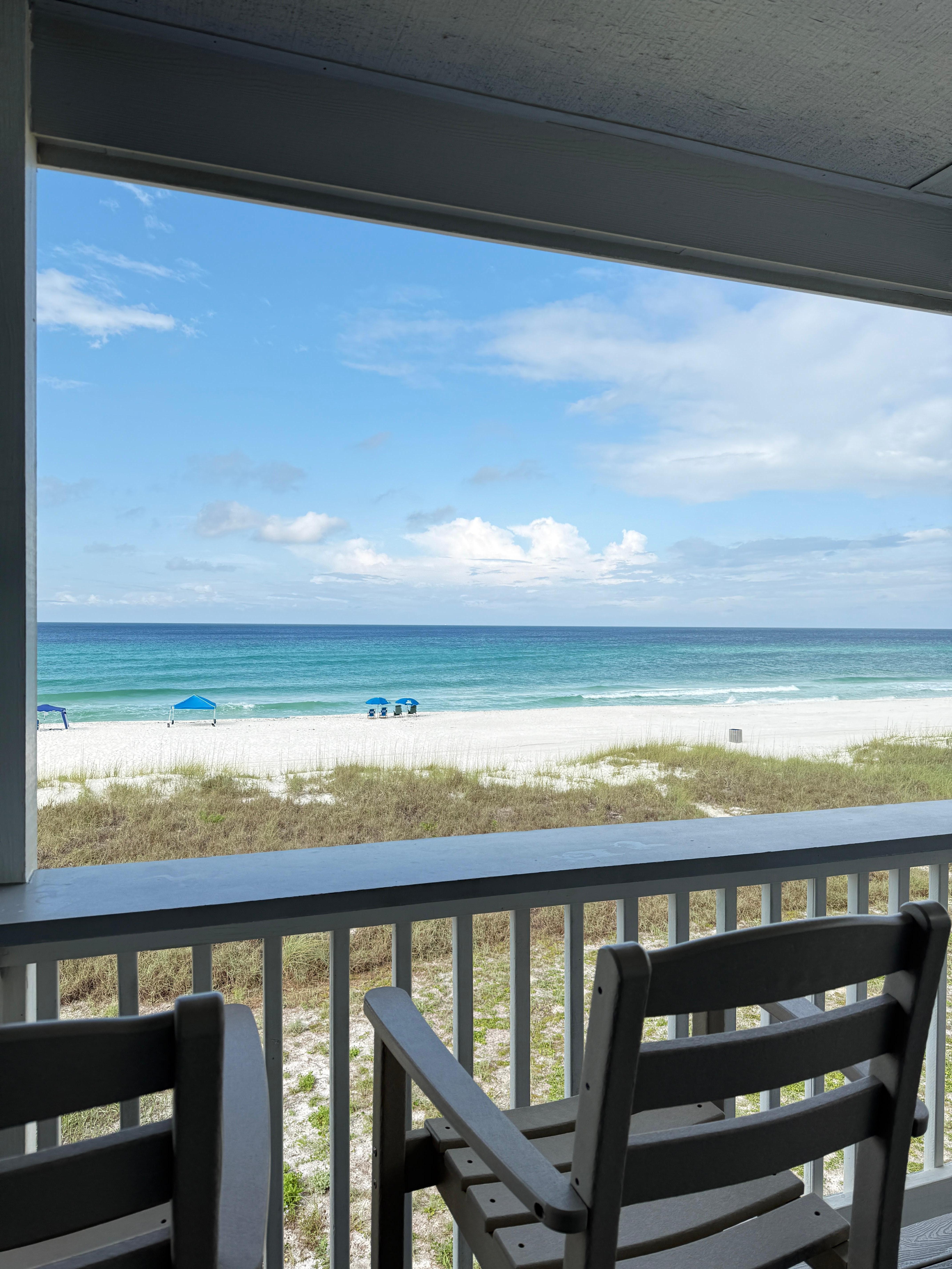 The expansive Trex deck, windows and patio door enhance the beauty of enjoying the coastal views and sunsets. The counter topped railing makes it easy to enjoy outdoor beverages and dining. The second floor unit in a two story building is on the beach with just one set of stairs to reach the beautiful beaches of the Gulf of Mexico of Northwest Florida. And, for a change of pace, there is an on-site pool. For those seeking comfort and luxury, this is the place for you.