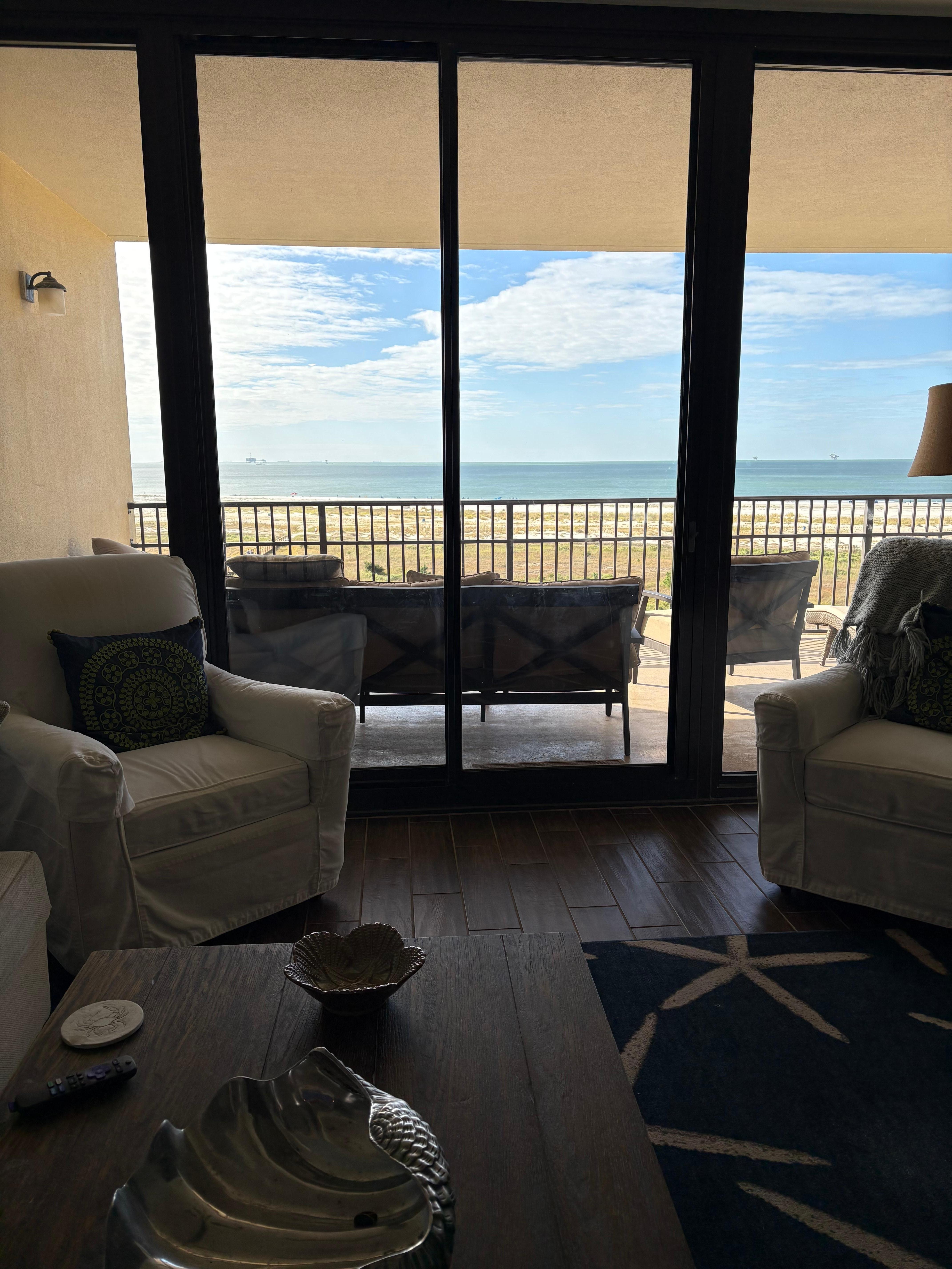 Spacious 6th floor unit with breathtaking views of the Gulf of Mexico, where you can relax on the balcony and enjoy both the sunrise and sunset.