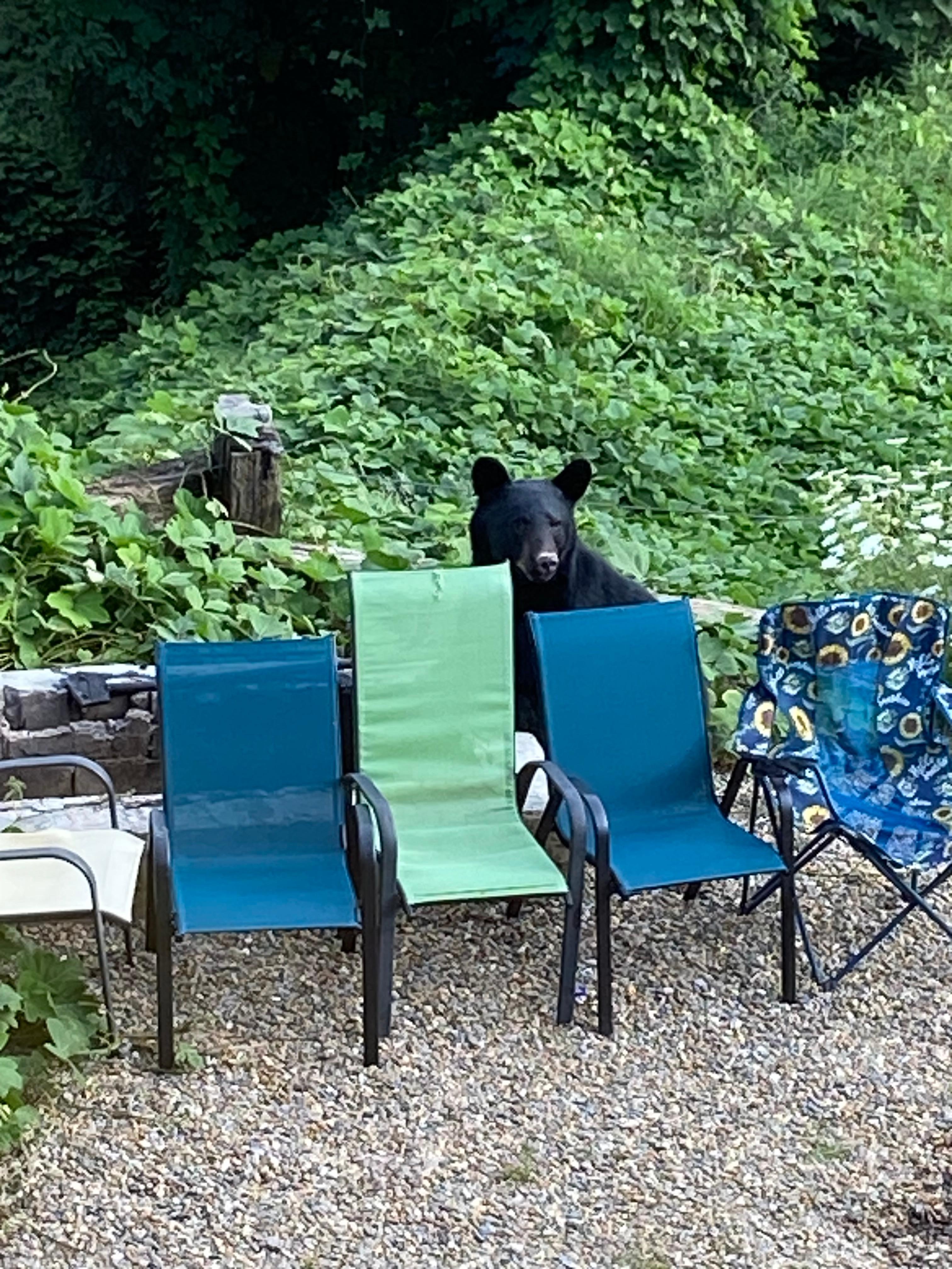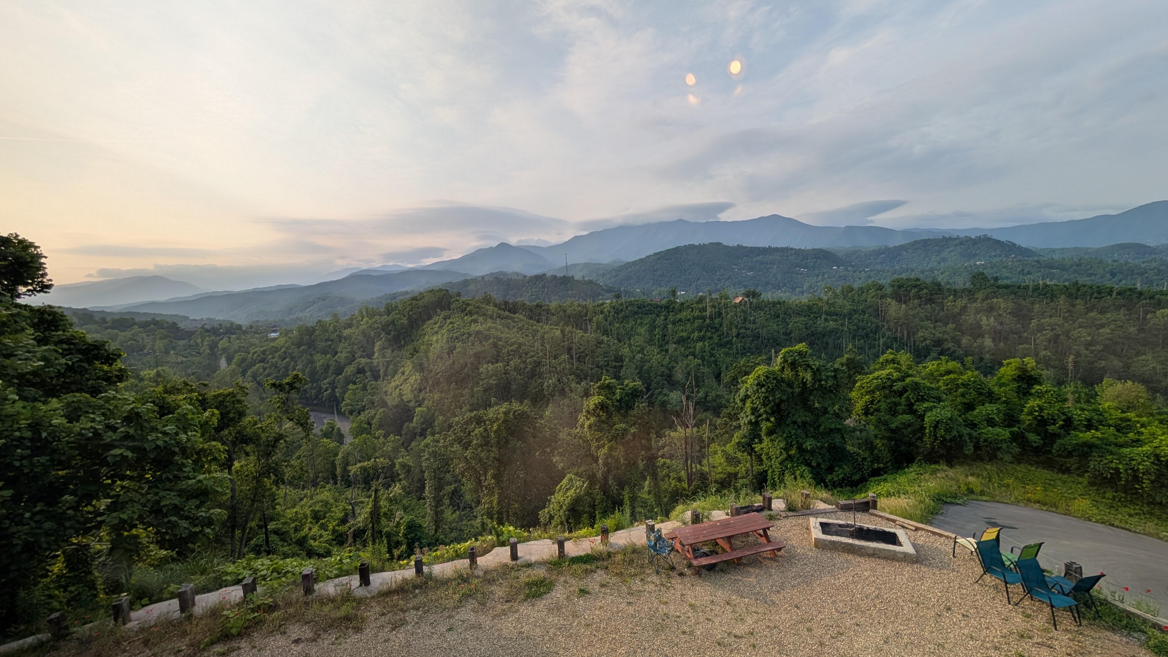 The "Pointe" at the end of the South parking area is situated with a 360-degree view of the Great Smoky Mountains. The Pointe features a large, 6'X3' firepit, perfect for slow burning 5' logs, which we provide, and roasting marshmallows and s'mores while surrounded by the Great Smoky Mountains. Lawn chairs and an extra-long picnic table that seats eight are provided.