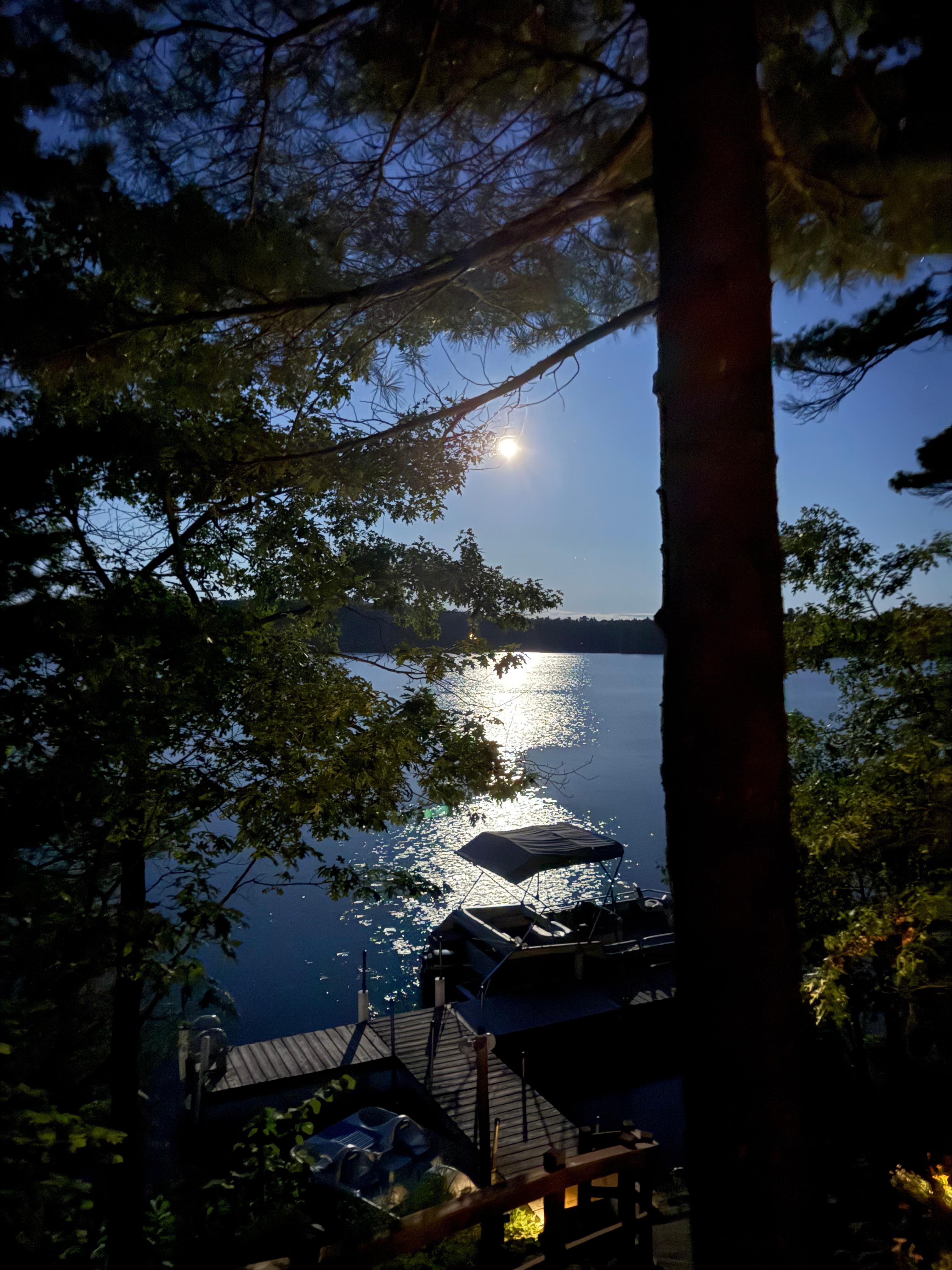 The lower-level family room has two double futons and a single chair/ futon sleeper, a woodburning stove, flat screenTV/DVD player, bar/sink area, and an under counter refrigerator. The lower level also includes a third bedroom furnished with a full log bed and a log bunk bed, a second full bath, and a laundry room with a full-size washer and dryer. Lower level is a walkout to a large cement patio, picnic table, swing and a fire pit generously stocked with ample firewood. The wide and gradual steps to the lake provides access to a large, private dock and a sandy-bottomed swimming area.