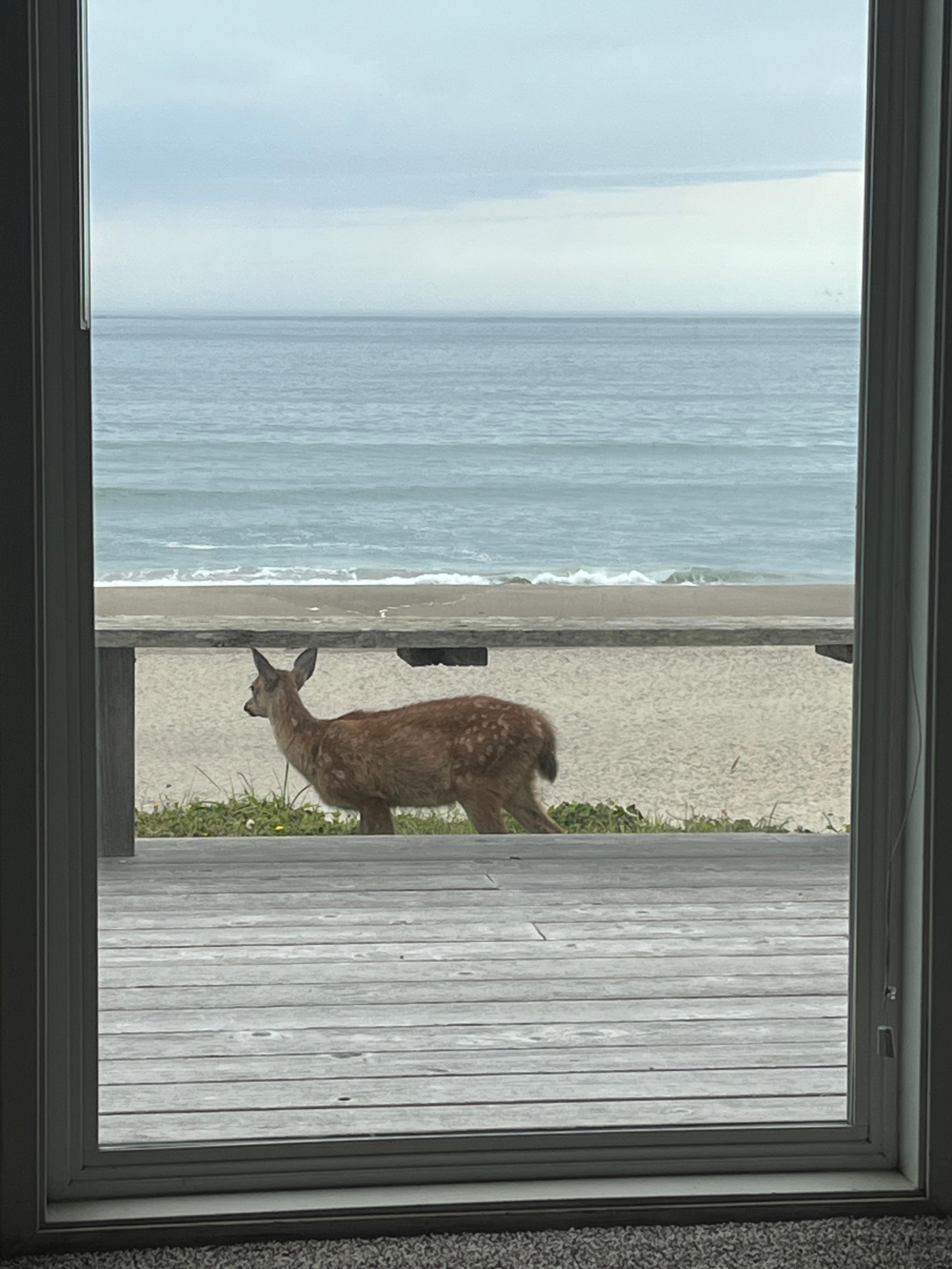 Super-wide deck with expansive coastal view offers good separation from adjacent suite. This is one suite of a duplex, so for larger groups, consider renting both suites using vrbo/HA listing 574624.