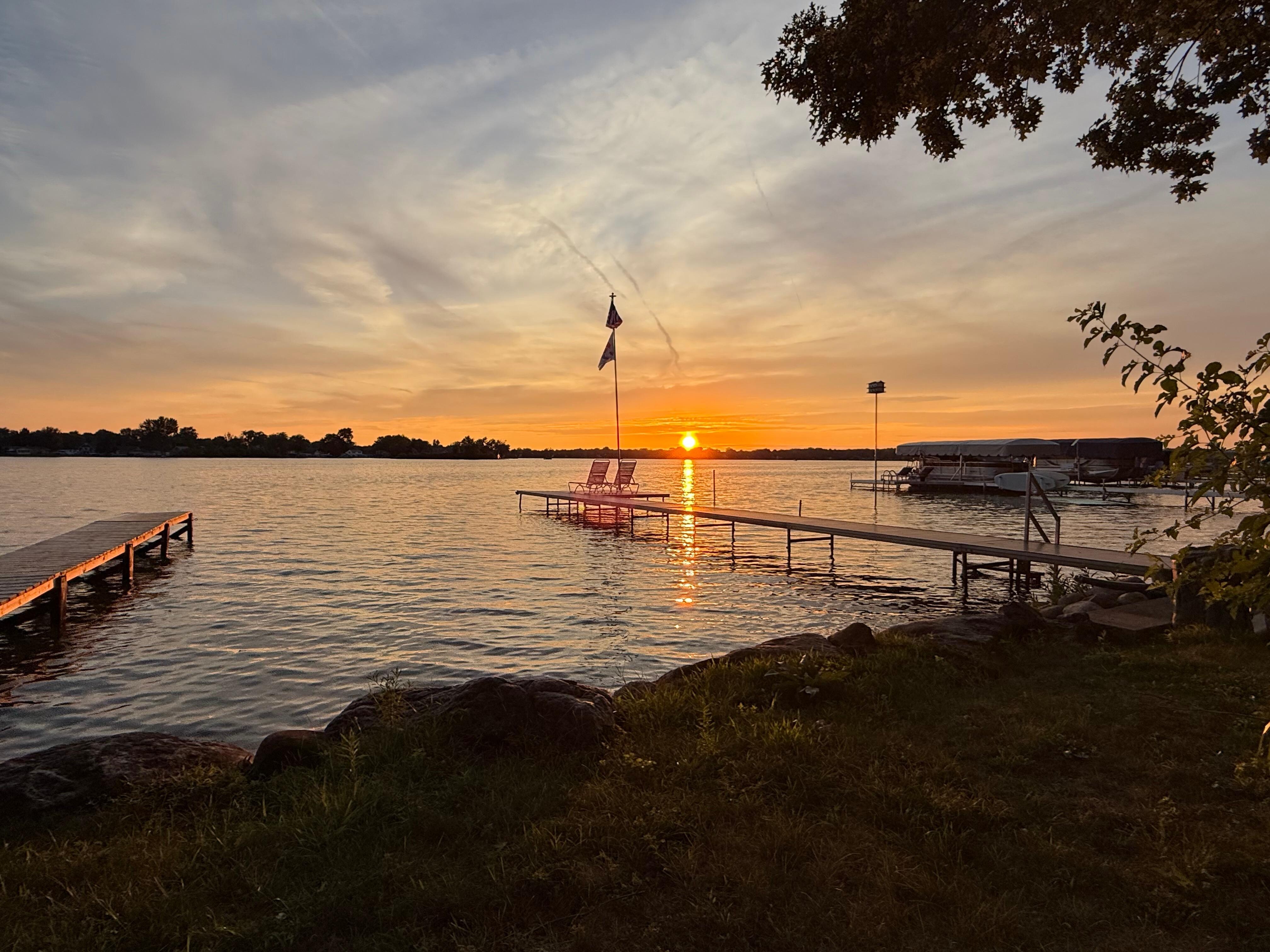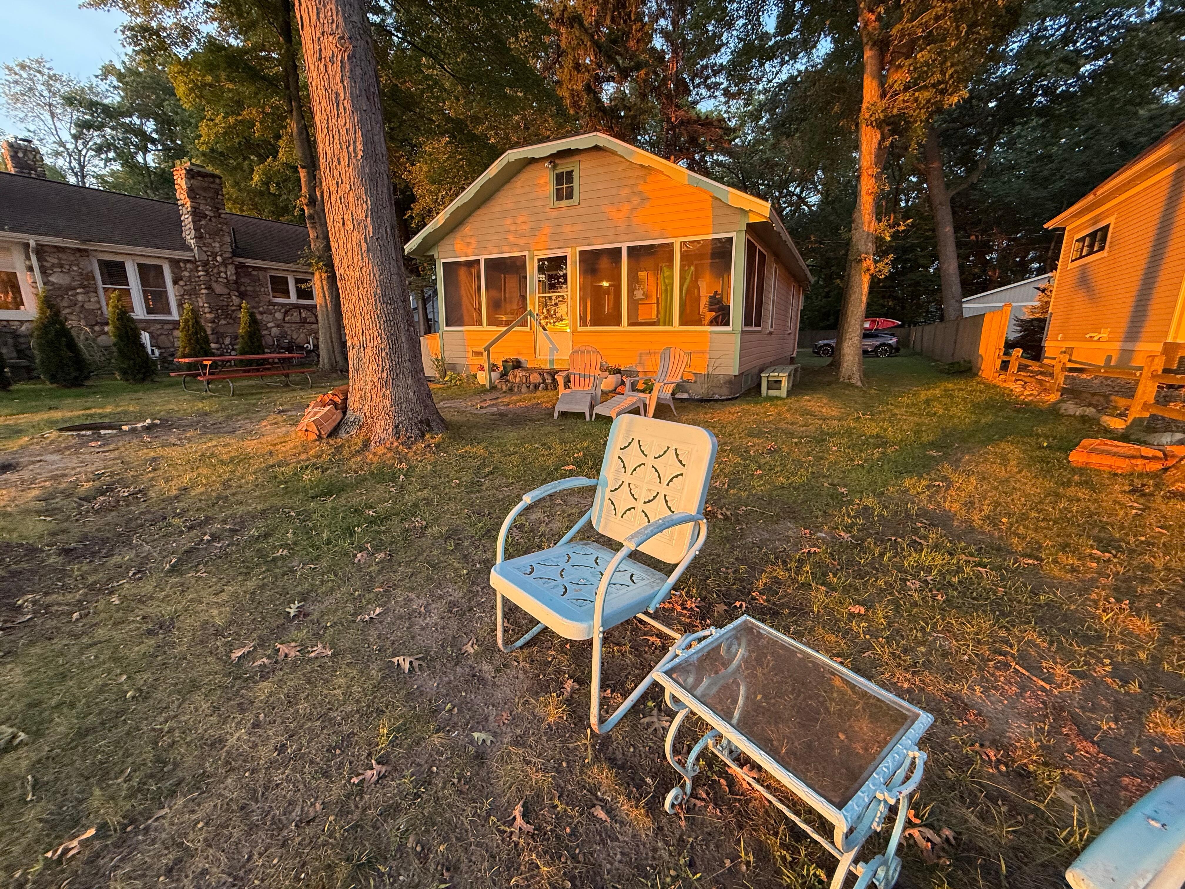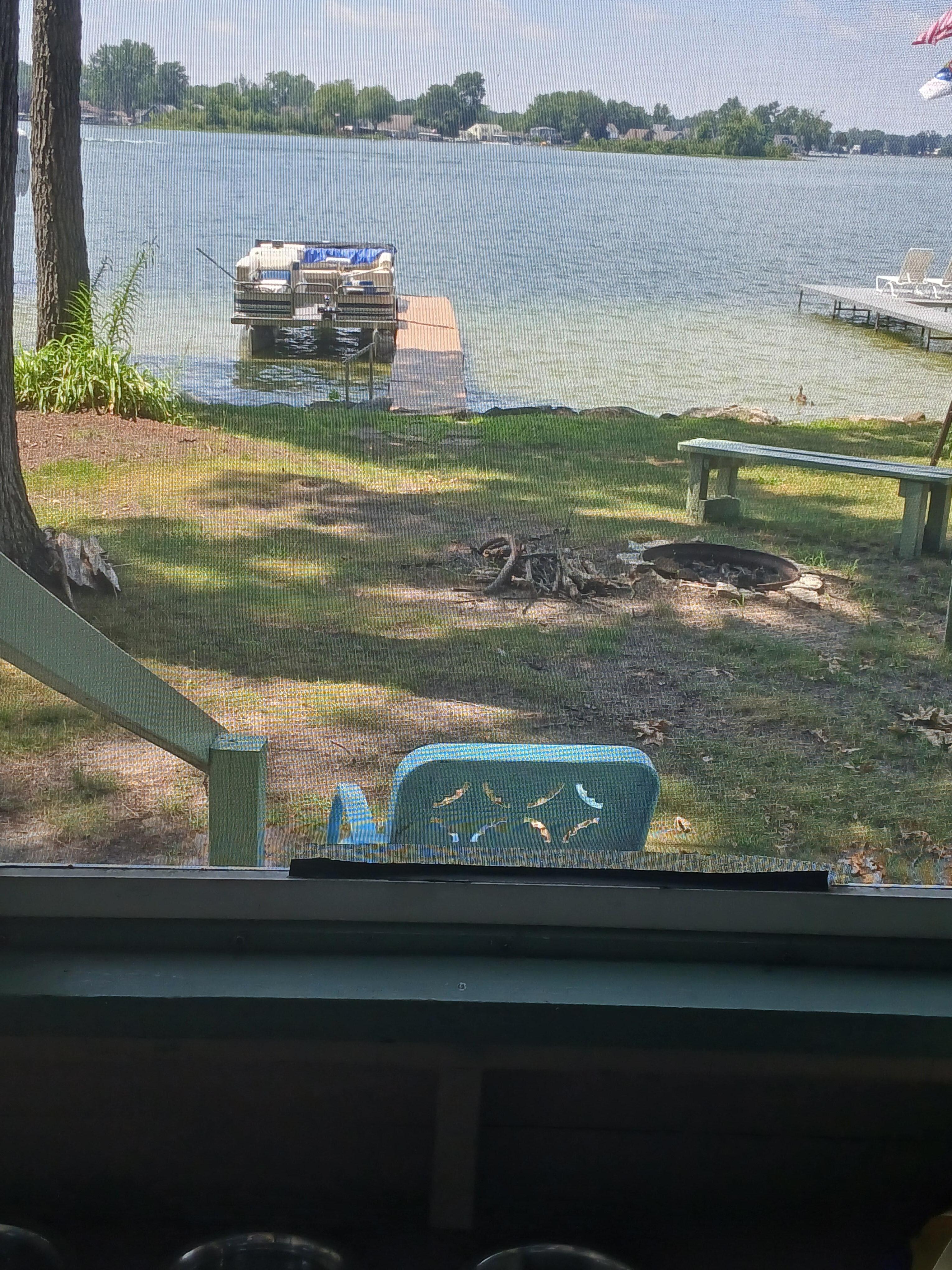 Enjoy our charming, rustic lake cottage with 2 bedrooms/1 bath. Bring your boat and tie up to the dock or paddle around in our canoe. After a day of fishing and swimming, enjoy a campfire in the fire pit while roasting marshmallows. Sit on the screened porch and enjoy the view of the lake. The outdoor gas grill is ready for your barbecue. The large backyard is great for a match of badminton. You will want to reserve your R&R time in the hammock that hangs by the shore.