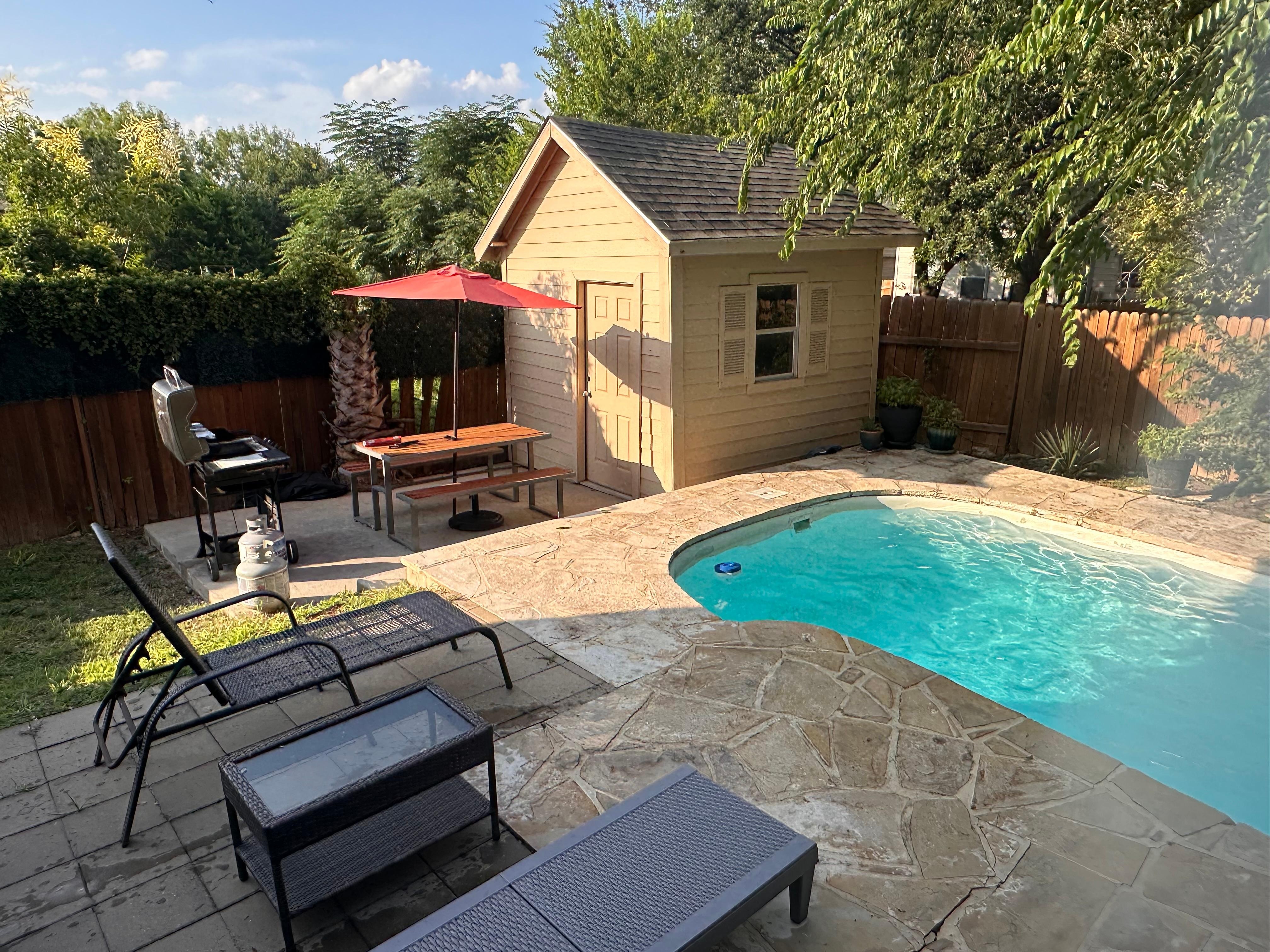 Private pool & backyard escape! Closest neighborhood to Sea World! Gorgeous 4BR/2.5BA vacation home, close to it all! Minutes from Lackland AFB (perfect for BMT graduations), shopping/dining/golf; less than 20min downtown! Enjoy outdoor fun with private pool, deck, and stainless steel grill. Spacious inside amenities include main-level master & suite, vaulted ceilings, 3 dining areas, modern kitchen with quartz countertops,wifi, 4 TV`s, each tv has a Fire stick installed for you to access your personal apps. On the home page is IMDBTV which provides free movies and news!