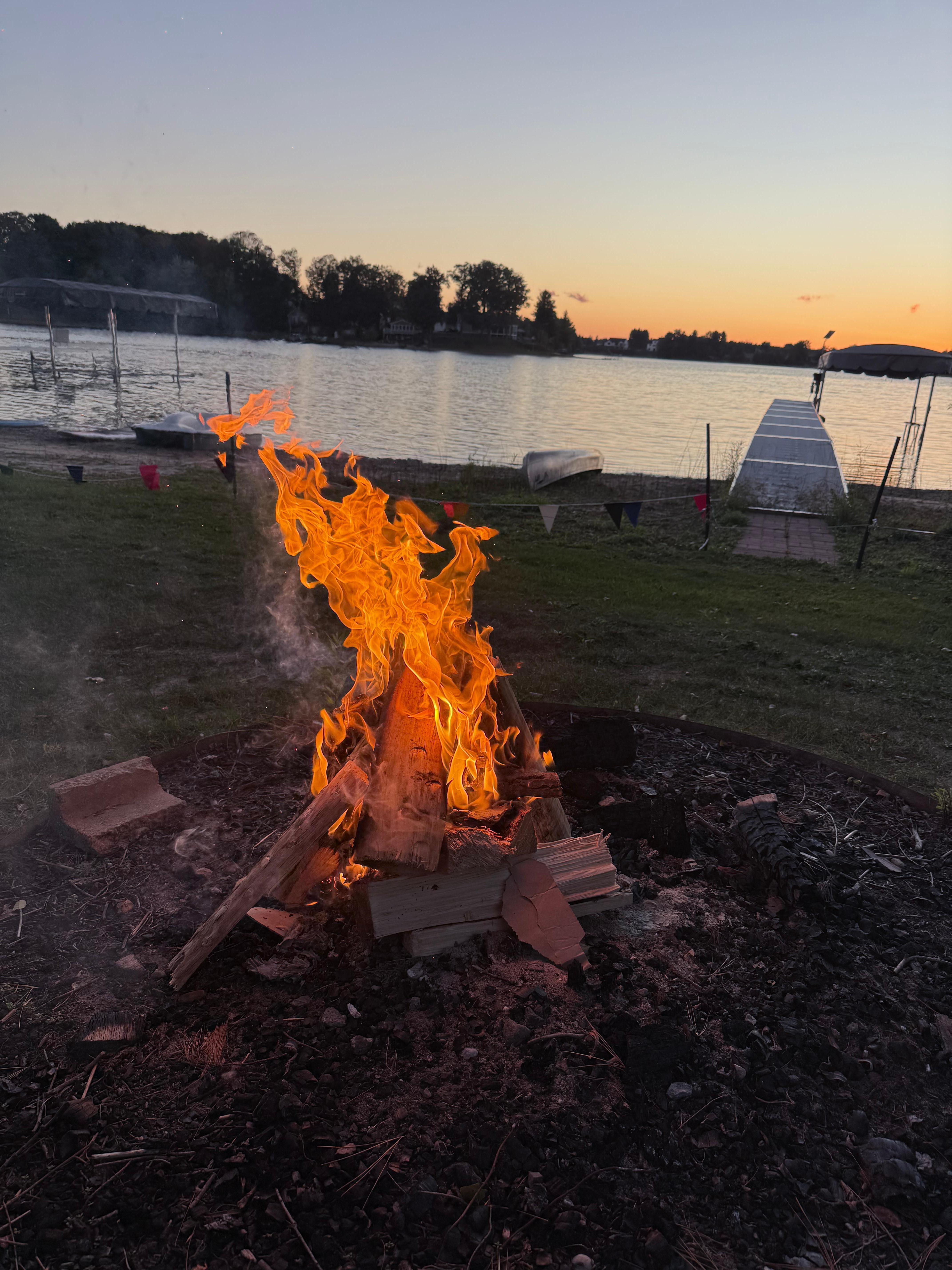 The cottage has two bedrooms and one bathroom. It sleeps six, with one queen bed in the main level bedroom, and two full-size beds in the loft bedroom. The kitchen is fully stocked, it even has a dishwasher. There is a laundry room in the cottage, available for your use. There is a canoe, paddle boat and stand up paddle board available for renters to use at no charge. There is a nice storage shed that has yard games/beach toys. There is a very large fire pit. The cottage comes with Wi-Fi, hulu live cable, 42” smart TV, AC units, games, and plenty of parking space.