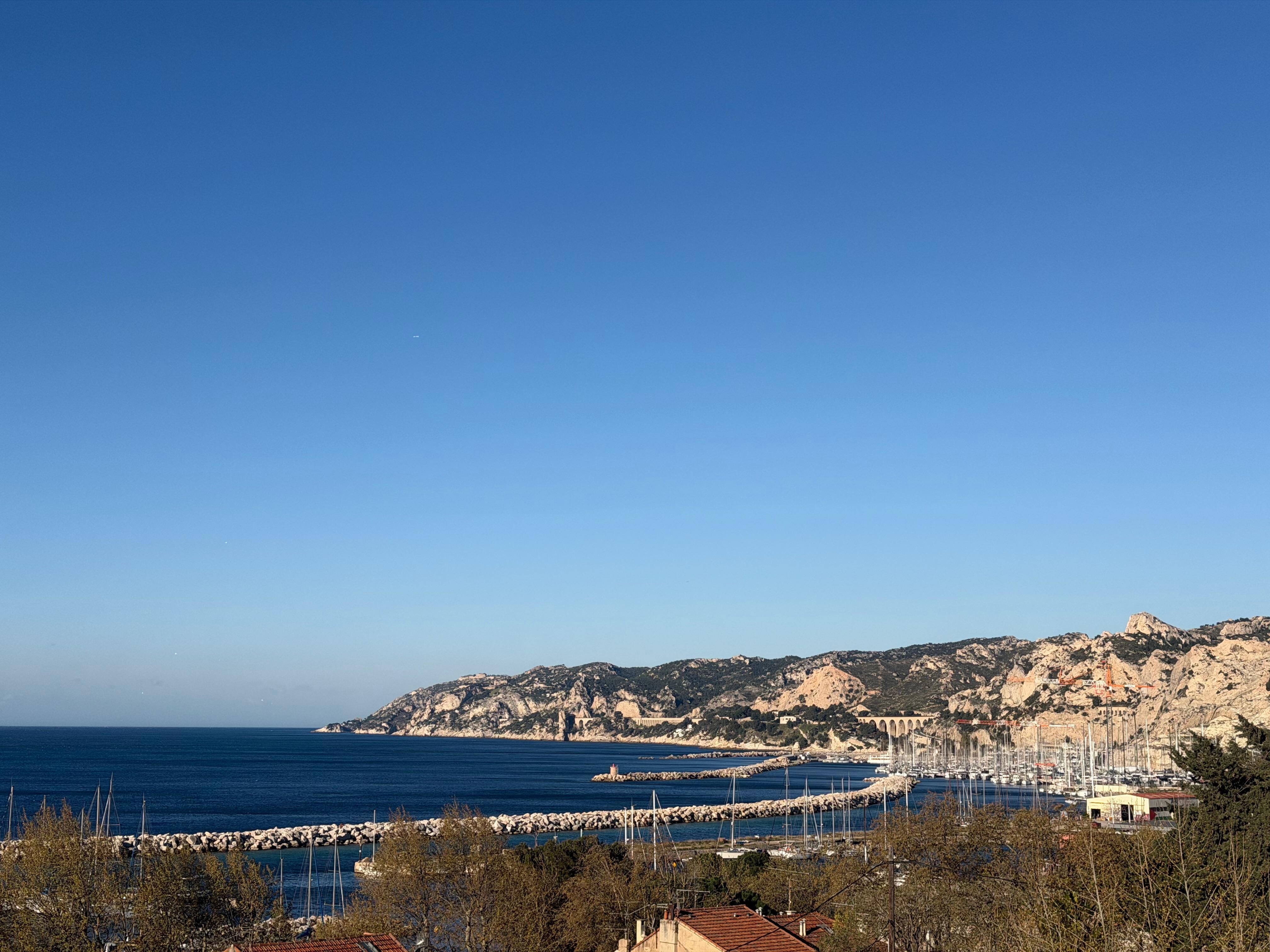 Puis à l’étage cuisine américaine et salon, terrasse avec vue féerique sur la mer et la baie de l’Estaque! Vue immortalisé par les nombreuses toiles de Cezannes, Braque, Dufy…