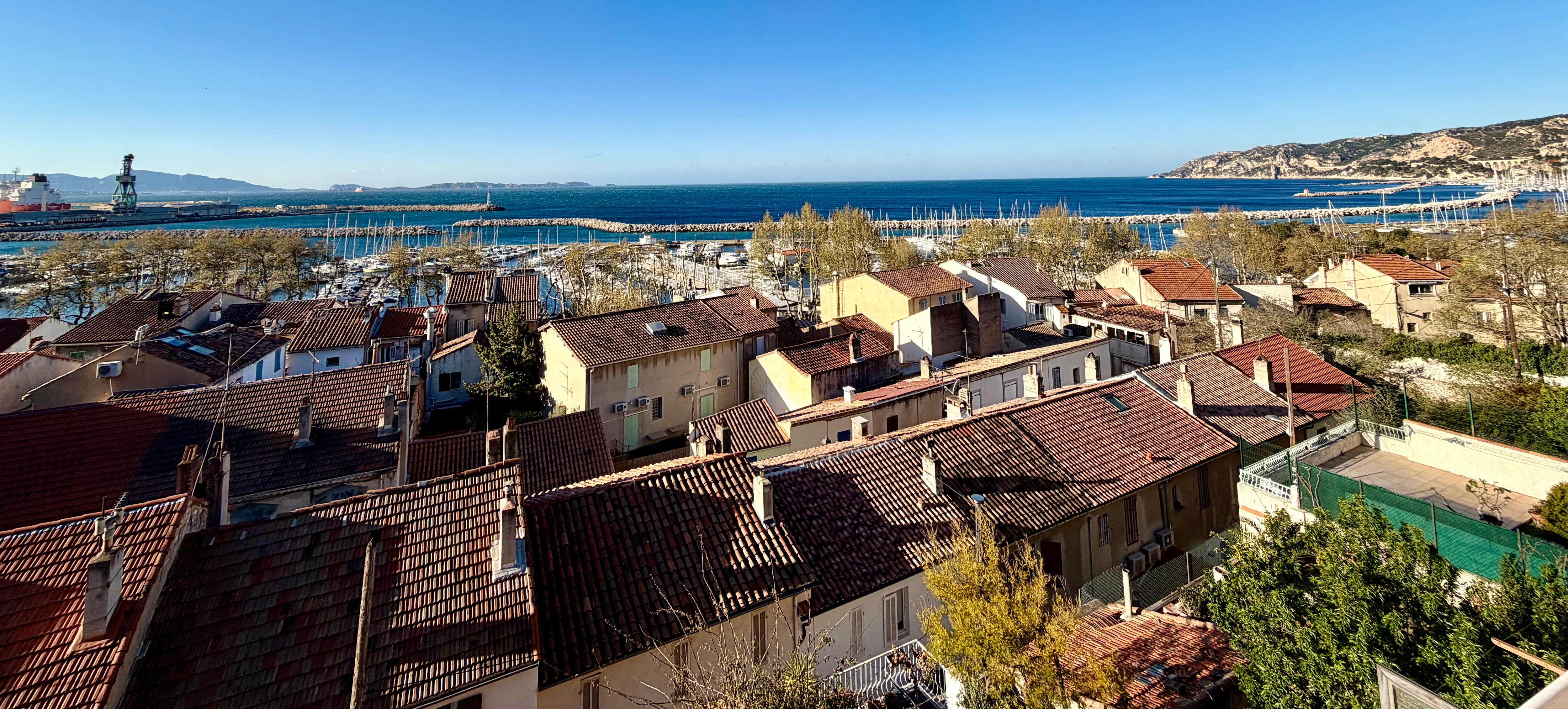 En plein coeur de l'Estaque à 10 minutes du Vieux Port de Marseille, duplex dans maison de village , vue féérique mer, plein sud, orientées sud,