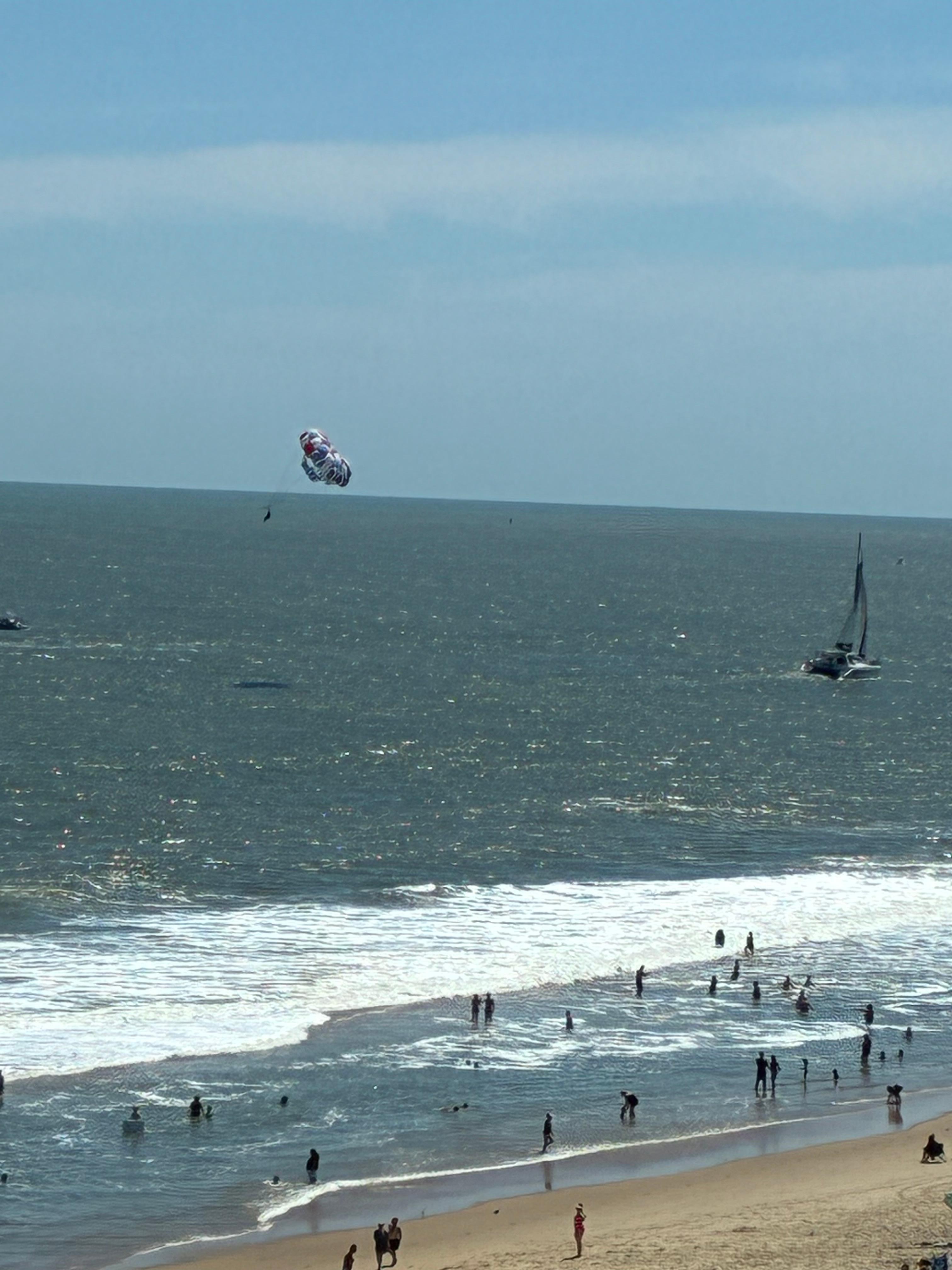 Enjoy the view of the Atlantic from the living area through the 18' wide glass wall or lounge on the full width balcony. Just 3 blocks from the boardwalk and convenient to Jolly Roger amusement/waterpark. Very affordable rental with new bedroom furniture (2 queens), new queen sleeper couch and new 40 inch LED flat screen. Dishwasher, full size washer and dryer, catv, bluray/dvd player, outdoor pool, outdoor shower. Beach umbrella and 4 sand chairs provided but not guaranteed due to guest use.