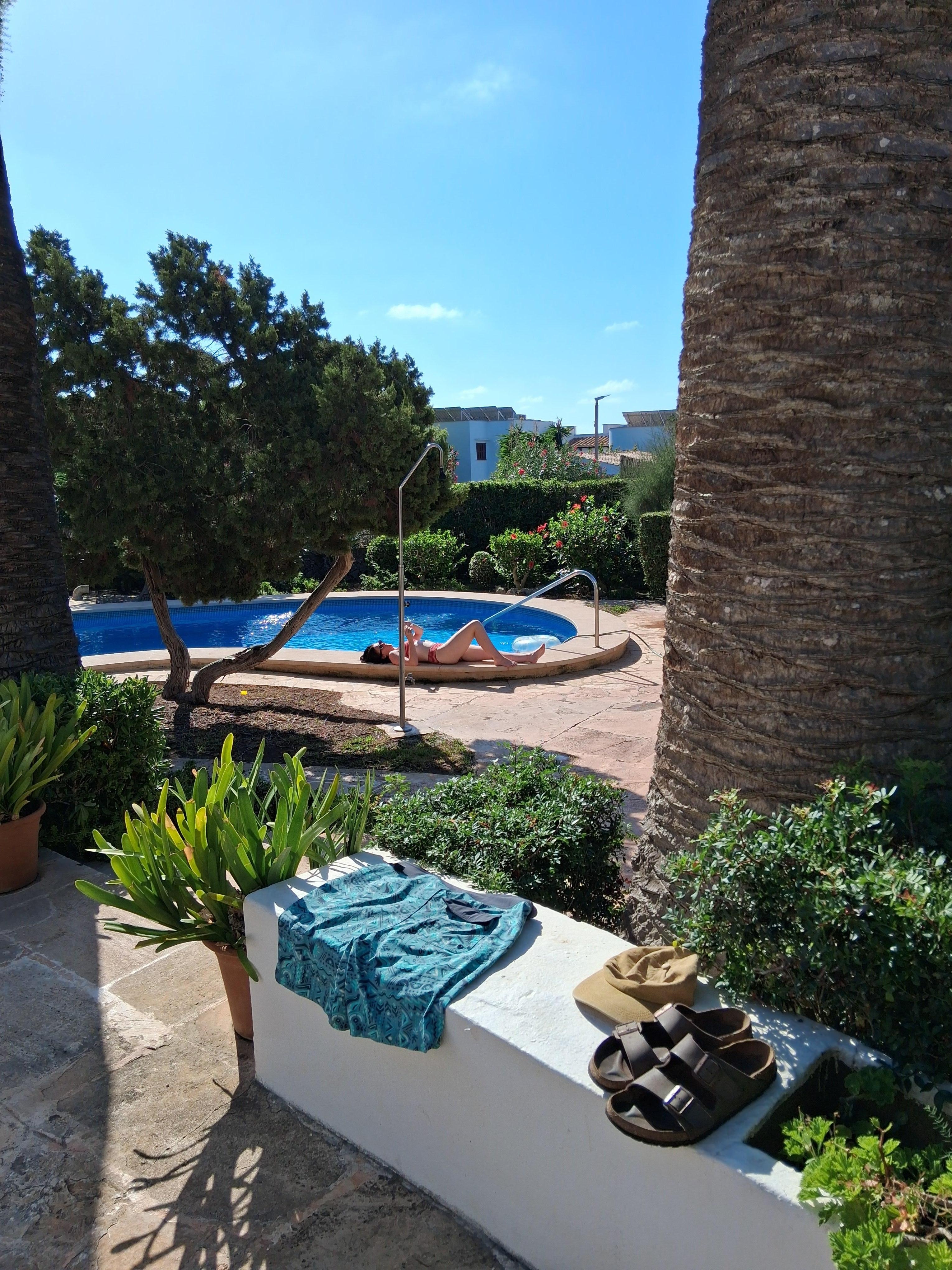 Casa del Sur is a completely and remodeled villa in a quiet residential area. The house has plenty of terraces on the ground floor and on the roof with a beautiful view of the sea. The inside has a very homey atmosphere. It is surrounded by a mature colorful flower garden with a large swimming pool. It is conveniently located at a 5-minute walk from the small beach of Cala Serena, at 800 m from shops and restaurants in Cala Ferrera and at a 20-minute stroll from the center of Cala d'Or.