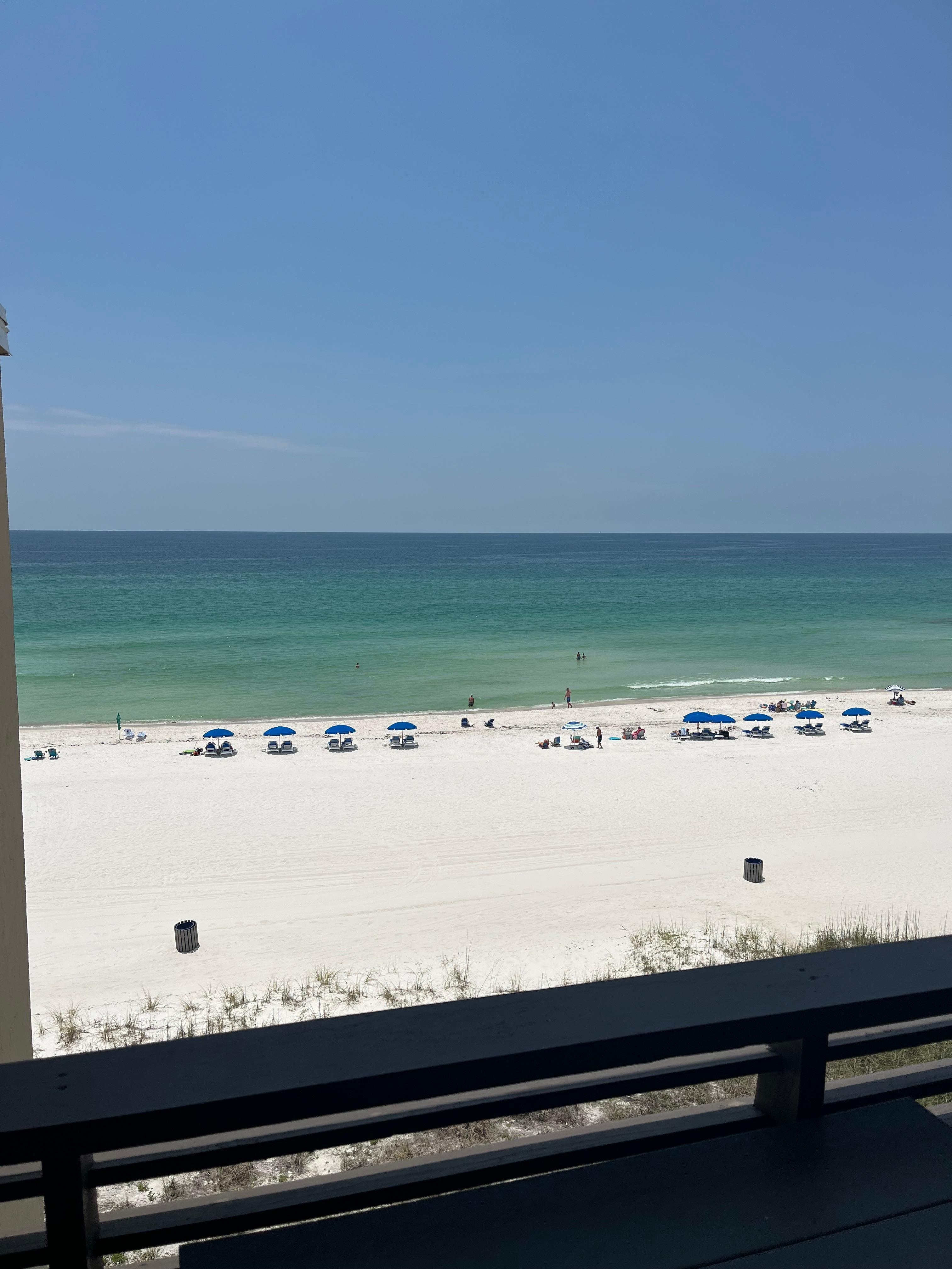 PROS: Not crowded, beautiful view, stocked kitchen, very comfortable beds, easy check-in, nice size condo, pretty décor., clean (except for bathroom floors), pet friendly, plenty of convenient parking, nice bathrooms and showers at pool area, plenty of tables & deck chairs. Building is older but well maintained (except for the elevator).