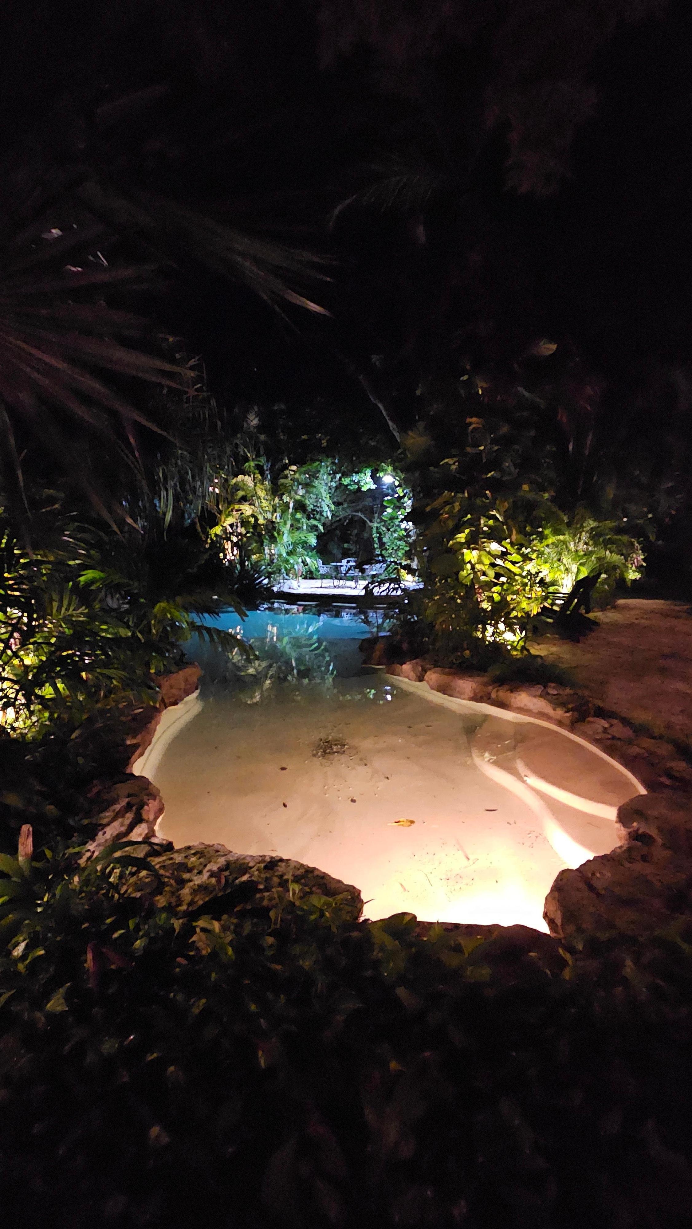 Nestled in the pristine jungle and walking distance to Xcaret Eco Park, the uniqueness of this hacienda's location enables the vacationer to experience Playa del Carmen without all the noise and hustle while making the perfect base to visit nearby attractions throughout the Riviera Maya and surrounding areas. Those looking for beauty away from the noise of the city will appreciate the peaceful environment that is located halfway between the great beaches of Playa del Carmen and Akumal’s Turtle Refuge. The one of a kind pool burrowed in the jungle garden landscape allows for good reason not to go anywhere at all. The night life of the world-famous 5th Ave is only 10 minutes away in one direction, while Xel-Ha Aquatic Theme Park and Aktun Chen are to the south. Visit the ruins of Tulum, just 25 minutes away. There is public transportation, taxis, combis and collectivos available within a 5 minute walk.