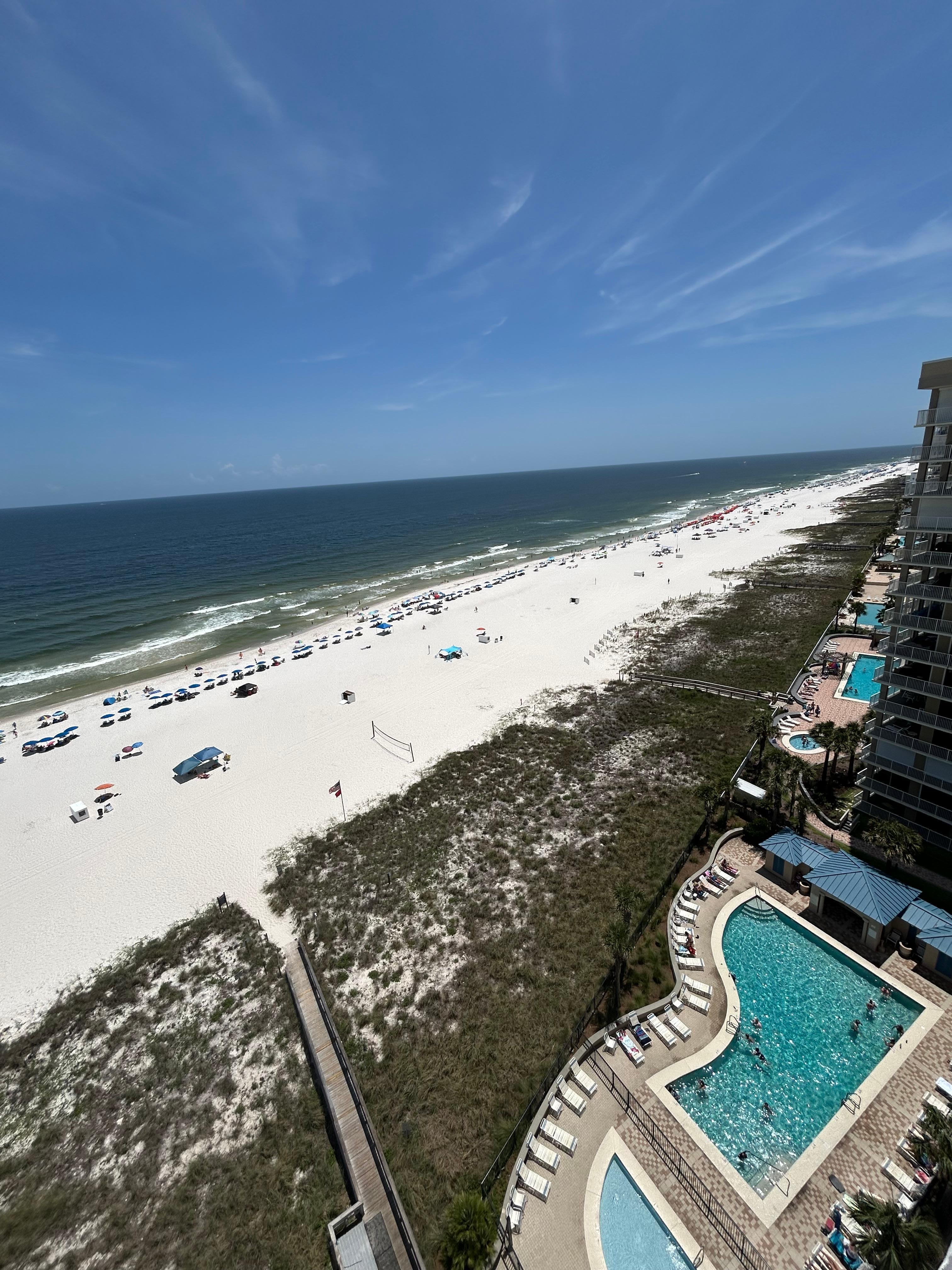 Bluewater is a 14 story building with 6 units per floor located 5.7 miles East of Highway 59 in Orange Beach. Bluewater has a large sun deck area with outdoor pool and hot tub. The indoor pool also has a hot tub and small fitness room. The property also has a grilling area. 2 car limit. No Winter Monthly's.
