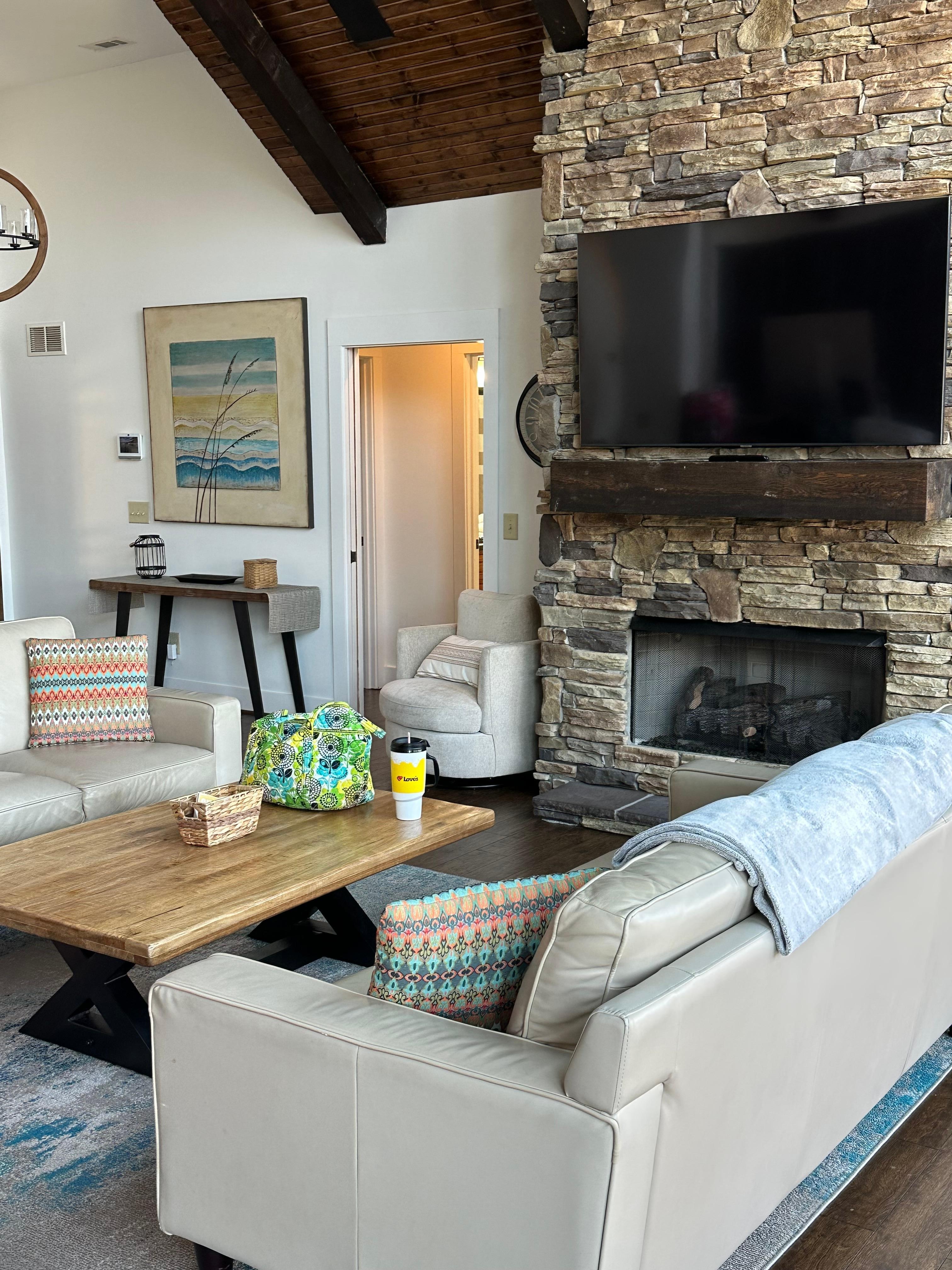 This beautiful, light-filled lake house is amazingly decorated with top-of-the-line construction and high-end furnishings and appliances. It’s perfect for those with large families or those just wanting a little extra space, elegance, and comfort.