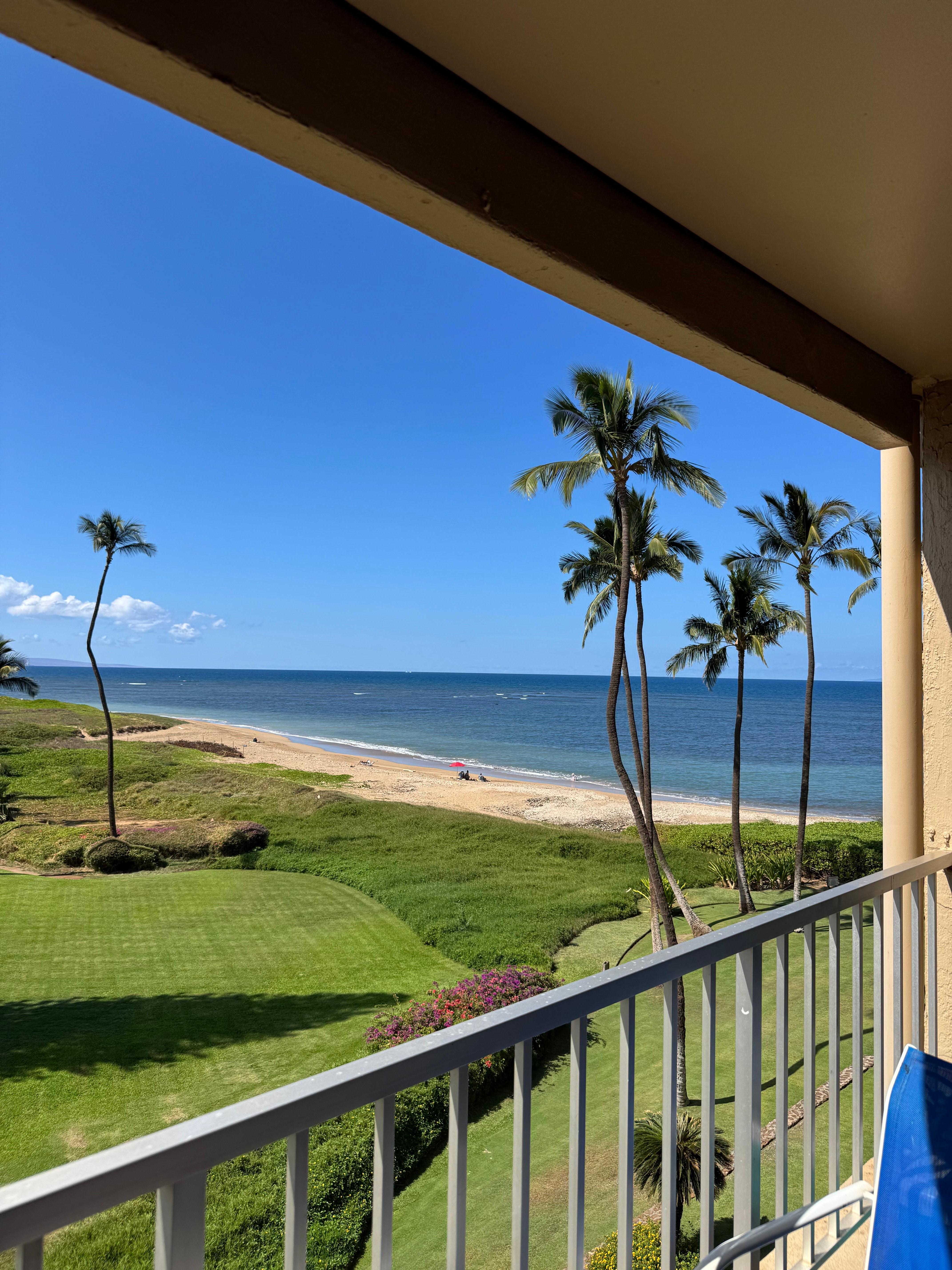 Menehune Shores #425 is an oceanfront ocean view unit with a gorgeous view of the ocean. It is a 2 bedroom 2 bath unit with split system A/C (6-hour timer) in the living room and both bedrooms, a fully equipped kitchen, washer and dryer, and internet service. There is a king bed, 2 twins, and sofa bed in the living room. The living room also has a 55-inch flat screen T.V. This unit has a powerful split system AC (6-hour timer) in the living room and both bedrooms. Menehune Shores #425 sleeps 6.