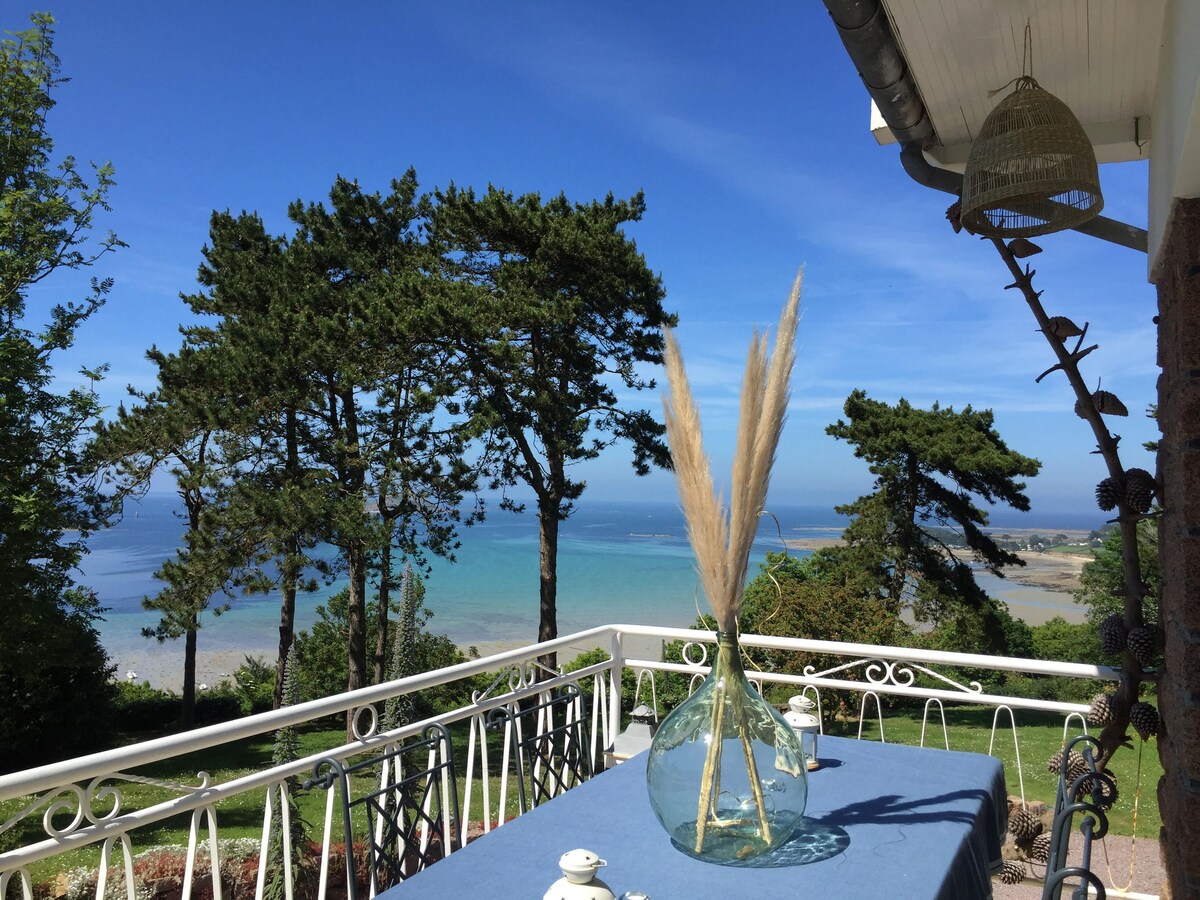At the end of a path rooted in the moor overlooking the small lighthouse Nantouar, our house is discovered and the landscape changes with the tides. The good life, the silence that only the murmur of the waves and the wind disturb. 5000 m2 of land planted with pines overlooking the sea and offering all lovers of Brittany and the great outdoors a dream panorama in a quiet and protected place.