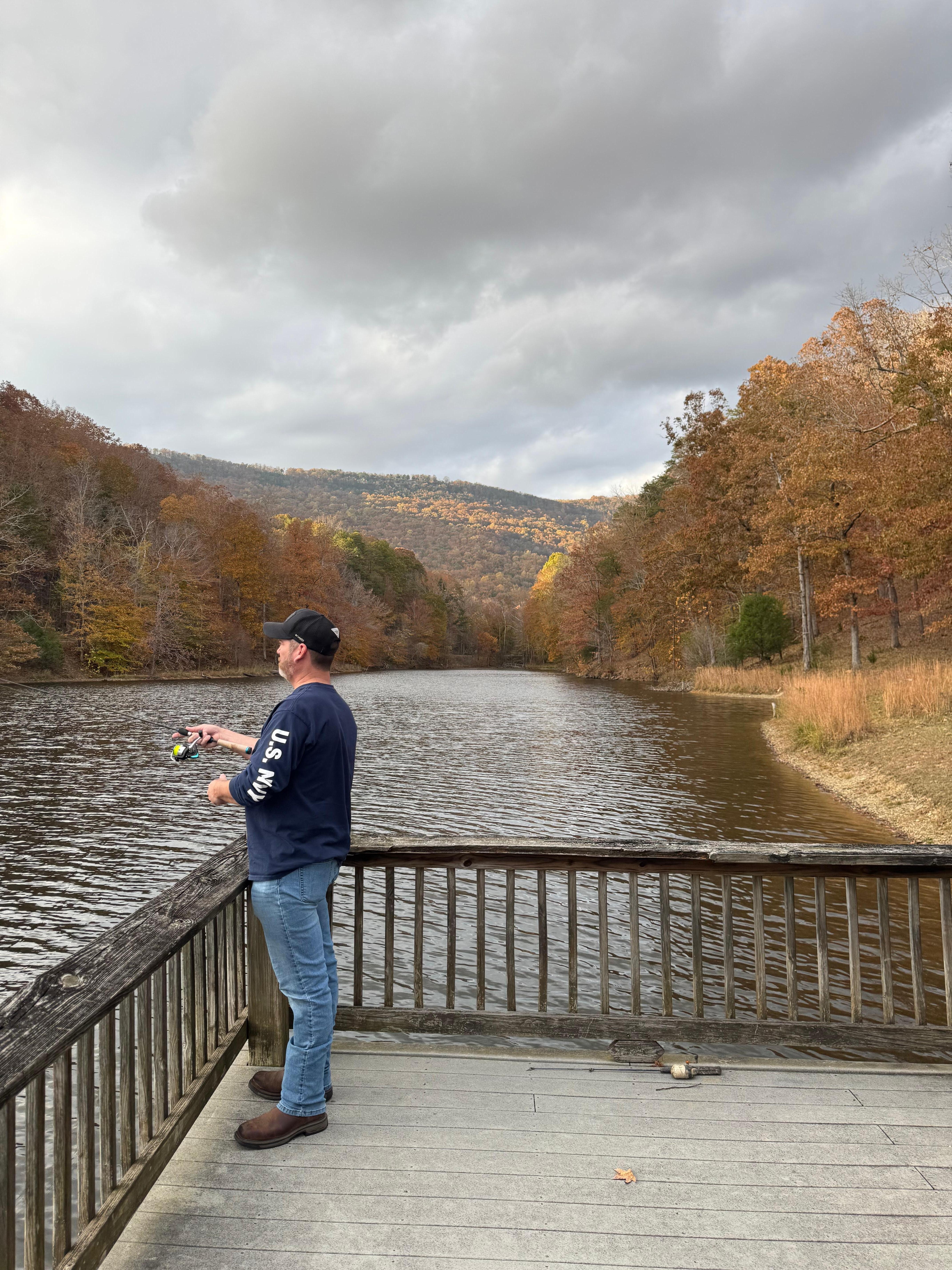 Wonderful cozy, rustic wood cabin, we call the Lakeview Fishing Cabin that sits on a beautiful location overlooking the lake and mountains at the Preserve in Johnson's Creek. The Preserve is located on the southwest side of Lookout Mountain in Rising Fawn, GA. We are just 35 minutes from downtown Chattanooga, but located in the mountains in a quiet retreat!