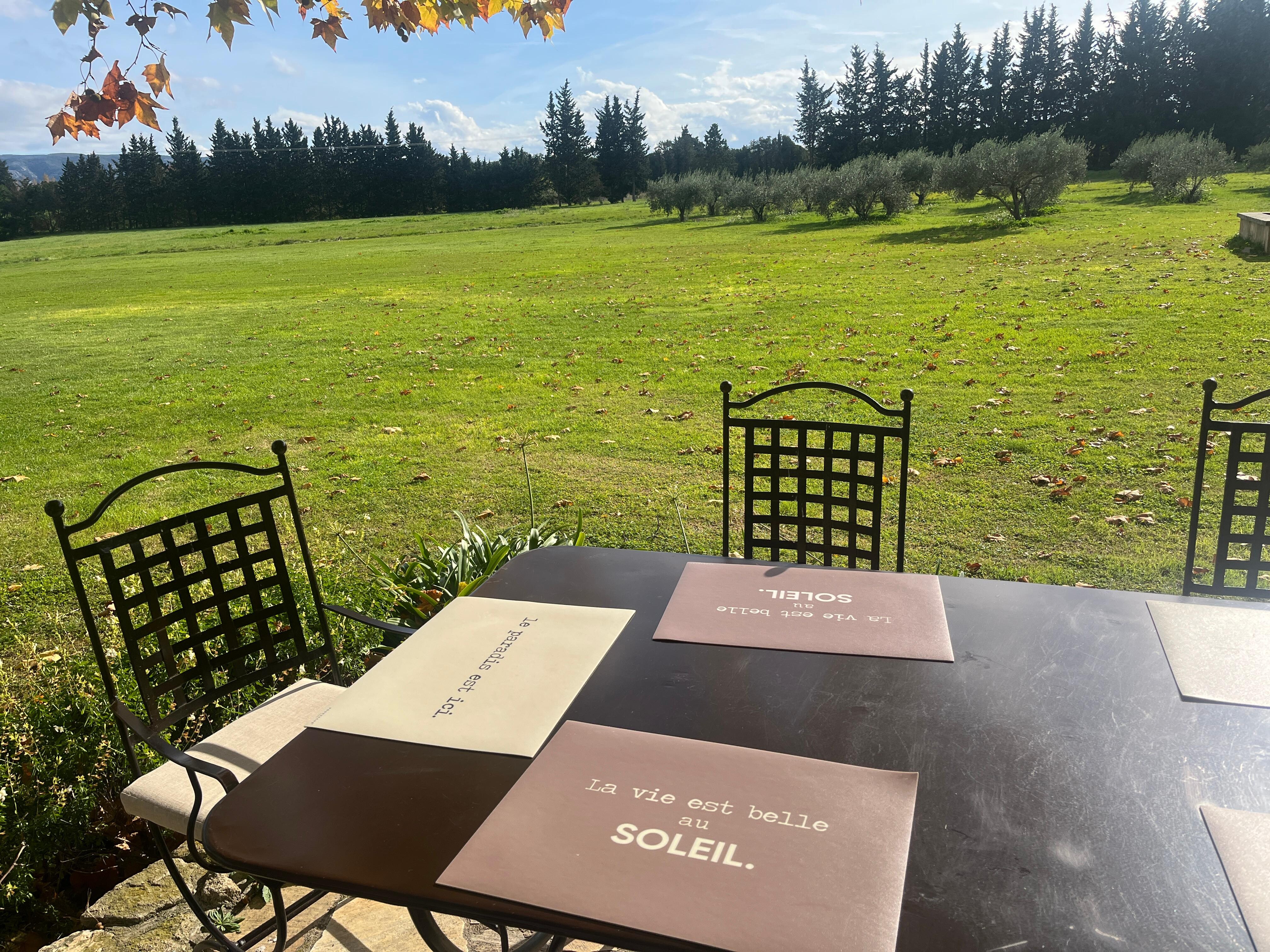 Mas 4 star 18th century south sheltered by plane trees including the ground floor kitchen-dining room with lacanche piano, work plan and stone sink, fireplace, American fridge, lounge with fireplace, office, home video.