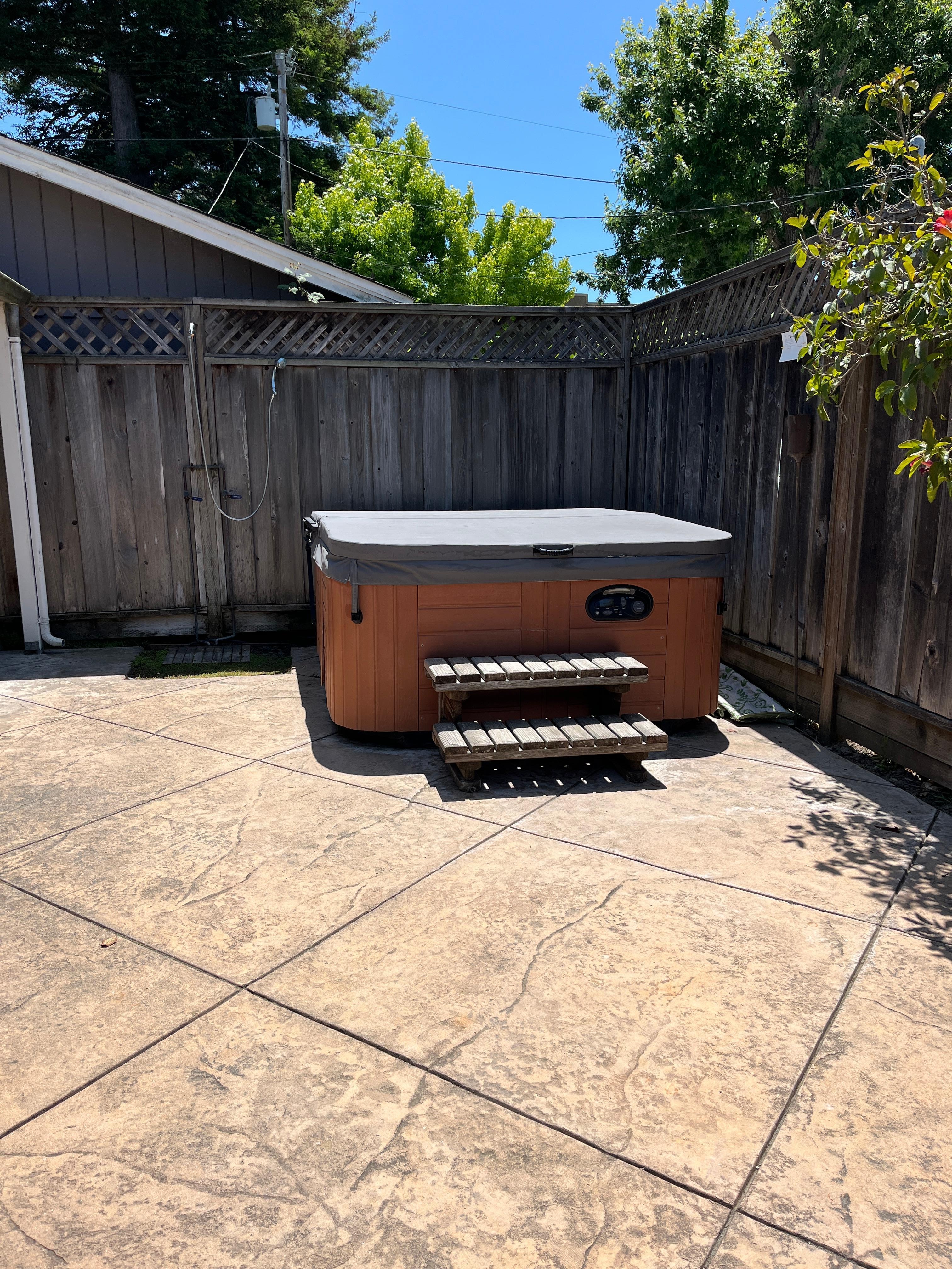 The great room is open and spacious so the entire family can relax together either on the comfy couch in the living space, at the dining table or fixing a snack in the fully stocked kitchen. There’s also a cute sun room stocked a TV to keep even the little ones entertained. The master bedroom features 5 star, hotel quality linens and a plush Cal King bed. The second bedroom has two twin beds, perfect for the kiddos. The third bedroom has a plush top, queen bed with deluxe bedding. Outside, you’ll find a fully enclosed yard with lots of room for outdoor BBQ meals and play. Winter or summer, the hot tub will be a perfect spot to relax after all your Santa Cruz fun.