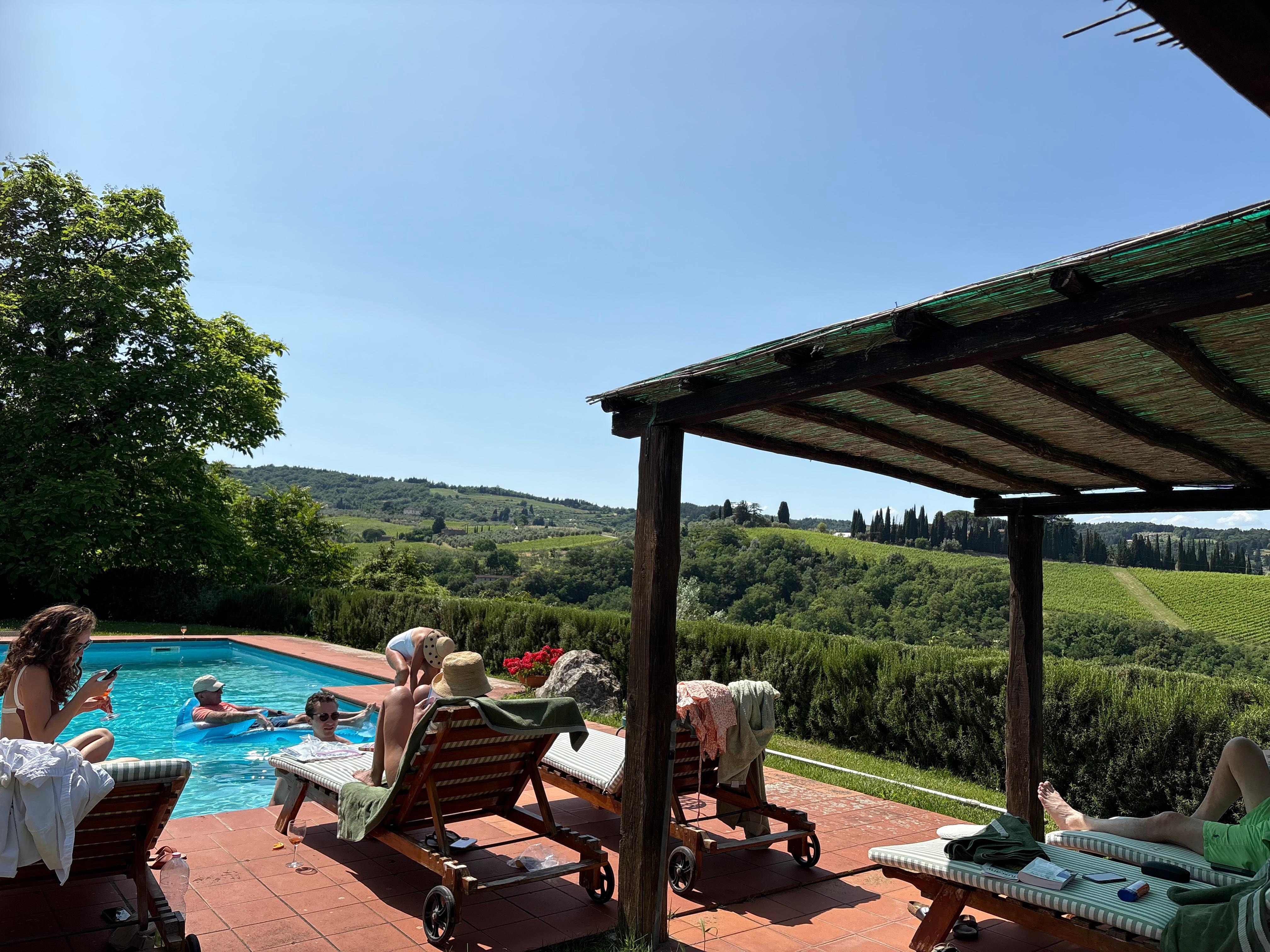 The private swimming pool (size 45 x 19 feet) overlooks wonderful views of the typical Tuscan countryside and comes fully furnished with lounges and shaded areas.