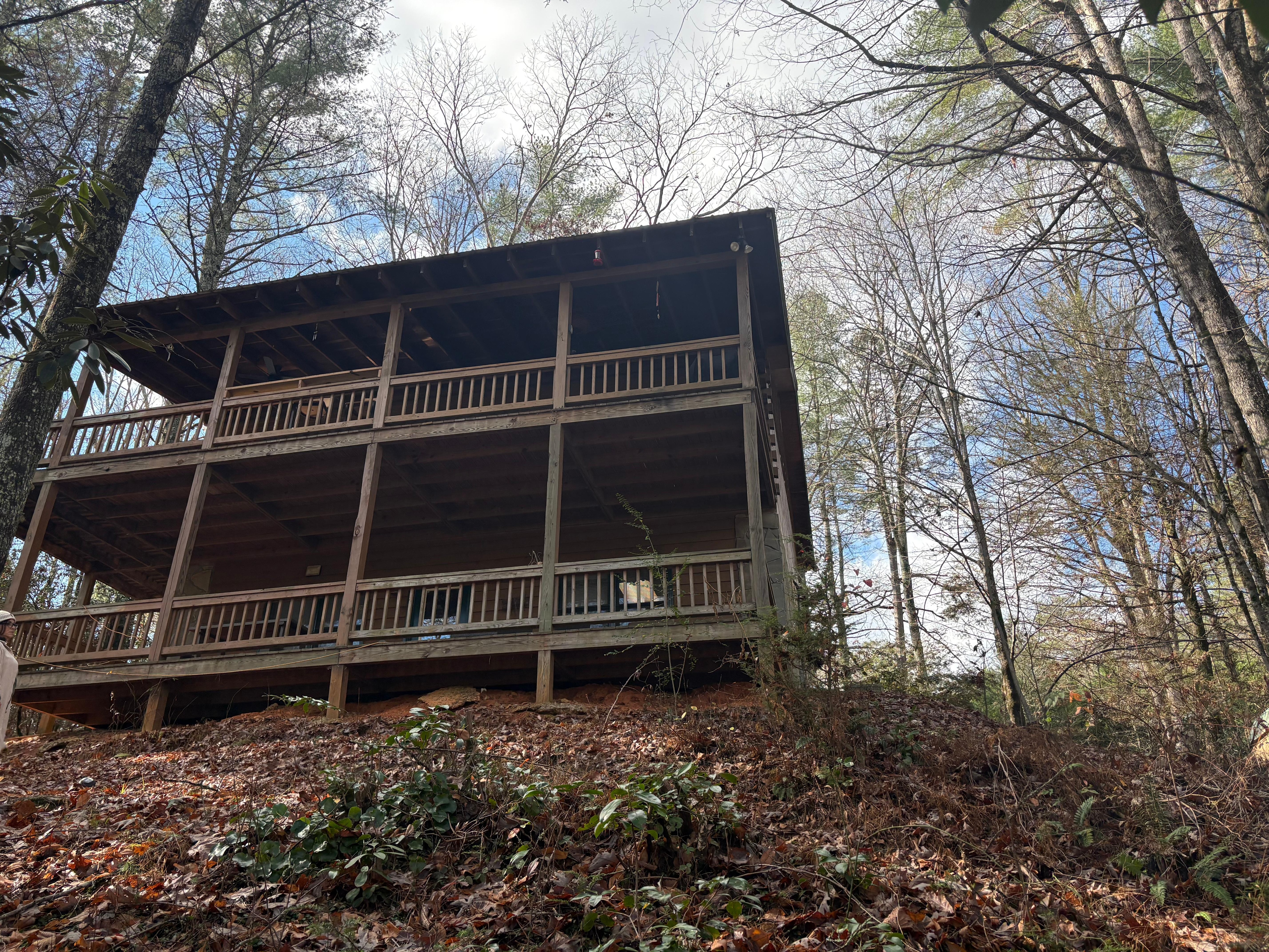 Real log cabin over looking rushing creek . The cabin is semi- private, yet close to everything.We are with in 7 miles of Lake Blue Ridge, the old town shops ,scenic railroad,river rafting,zip lining and lots of hiking trails. We have two bedrooms up stairs and two baths and one bed and bath downstairs. Two decks overlooking creek, fire pit outside,fireplace inside . We have a grill on porch, we also have wifi , board games , The creek is very dangerous to get in and fish so we do not allow people in creek , but have a observation deck you can sit on and enjoy the sounds and view, There is a lot of places near you can go fish,