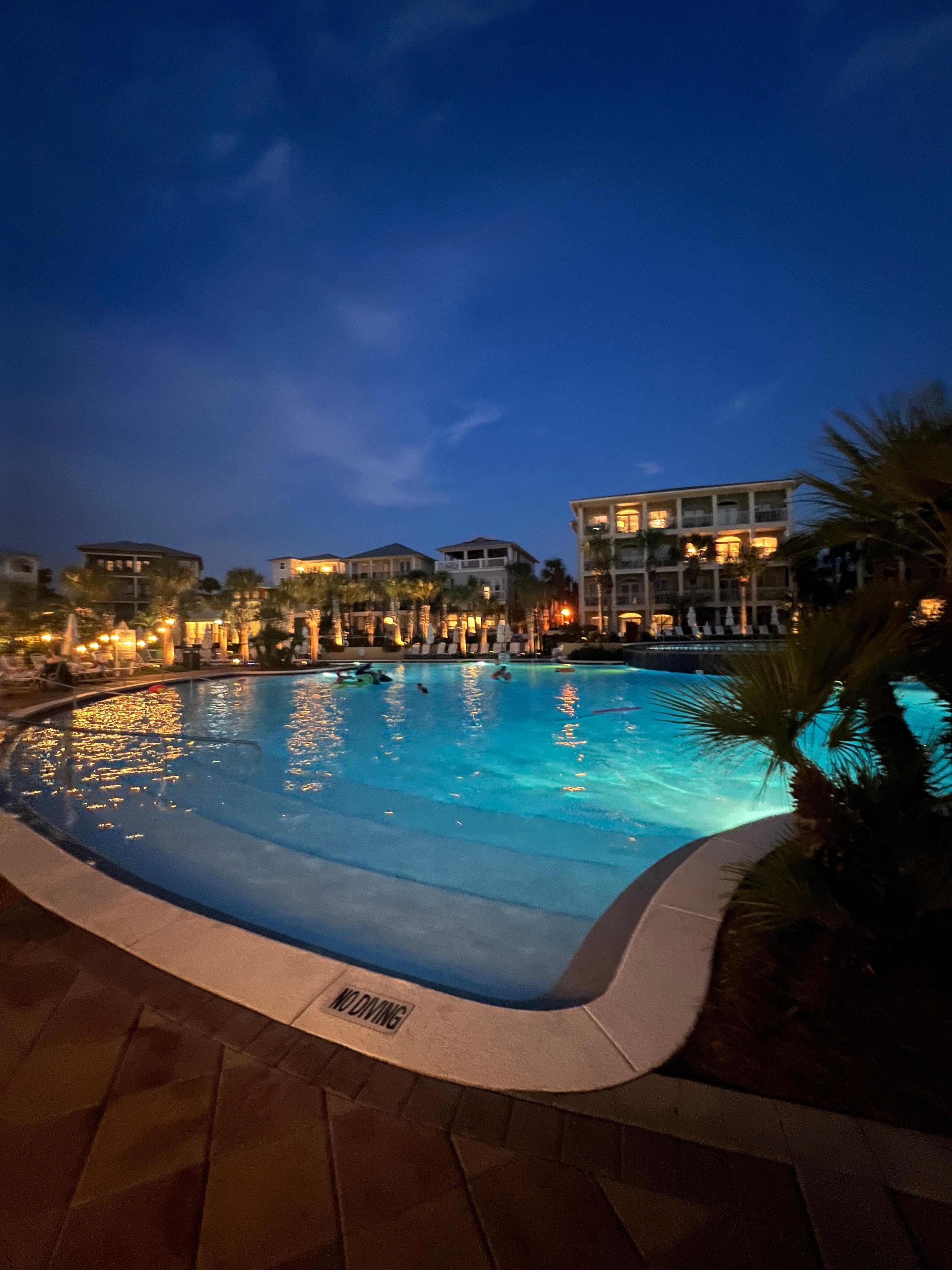 When you're ready for more fun, the Seacrest community offers a massive 12,000-square-foot lagoon pool and amphitheater. The complimentary tram can whisk you to the beach, or you can grab lunch at Crabby Steve’s, a casual spot right on the sand.