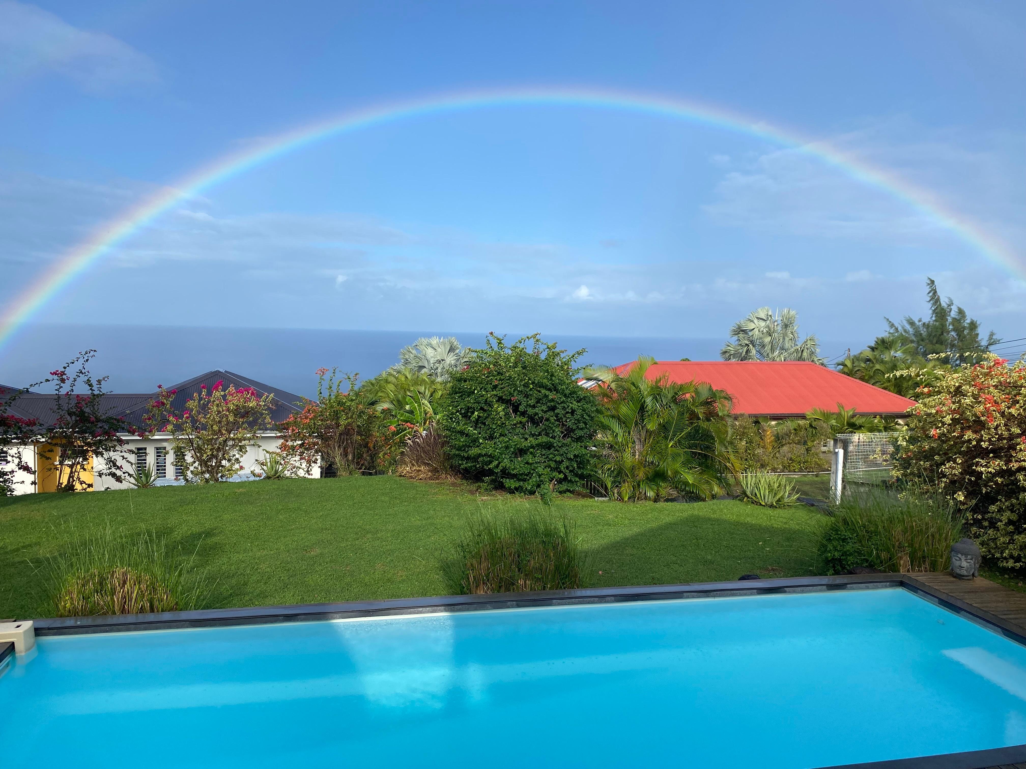 La villa de Fabrice est charmante! Juchée sur les hauteurs de Ferry , elle nous offre une très belle vue sur la mer! La villa est fidèle au photos, grands espaces de vie, cuisine bien équipée, chambres confortables et isolées par une porte qui se ferme. La terrasse est très agréable, de même que la piscine et le grand jardin fleuri où il fait bon se reposer à l’ombre du magnifique palmier ! Le coq et sa poulette, ainsi que ti wazo noir nous rendent visite à tous les jours!Fabrice est très réactif à nos demandes, et nous a donné de bons conseils sur les différents restaurants de Deshaies et ailleurs! Ce fût bien apprécié! Merci de nous partager ta belle propriété, Au plaisir de se reparler l’an prochain!