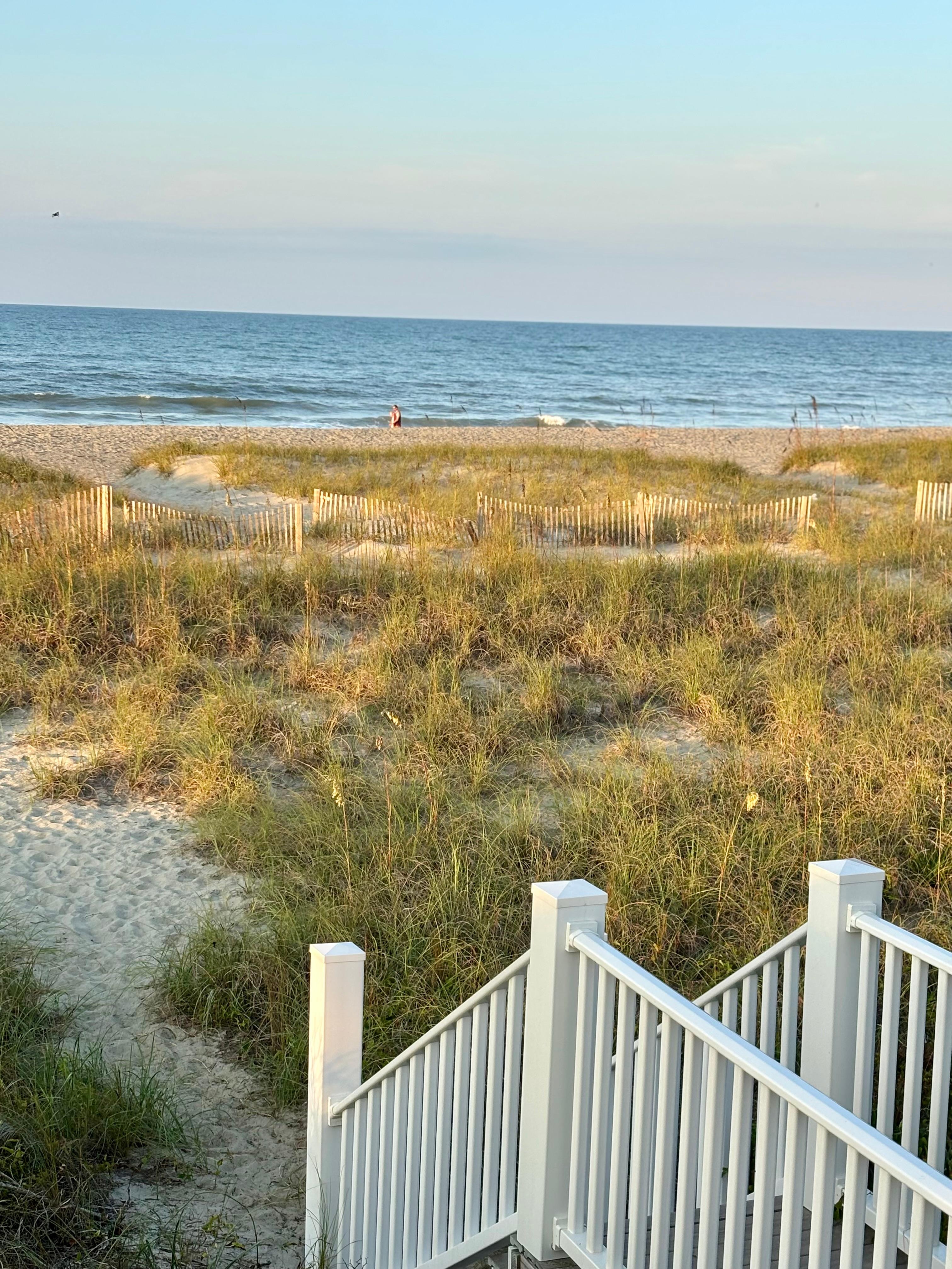A unique advantage of our beach home is that it is located closer to the ocean than the surrounding homes, providing excellent views and maximum privacy from neighboring homes. When you are relaxing on the backporch, neighboring homes/porches will be out of view. We have a spacious wrap-around porch overlooking the ocean with plenty of deck furniture. Our porch leads out to a private boardwalk to the beach. Outside you will also find a hot/cold outdoor shower, hammock, grill, and plenty of parking underneath the house.