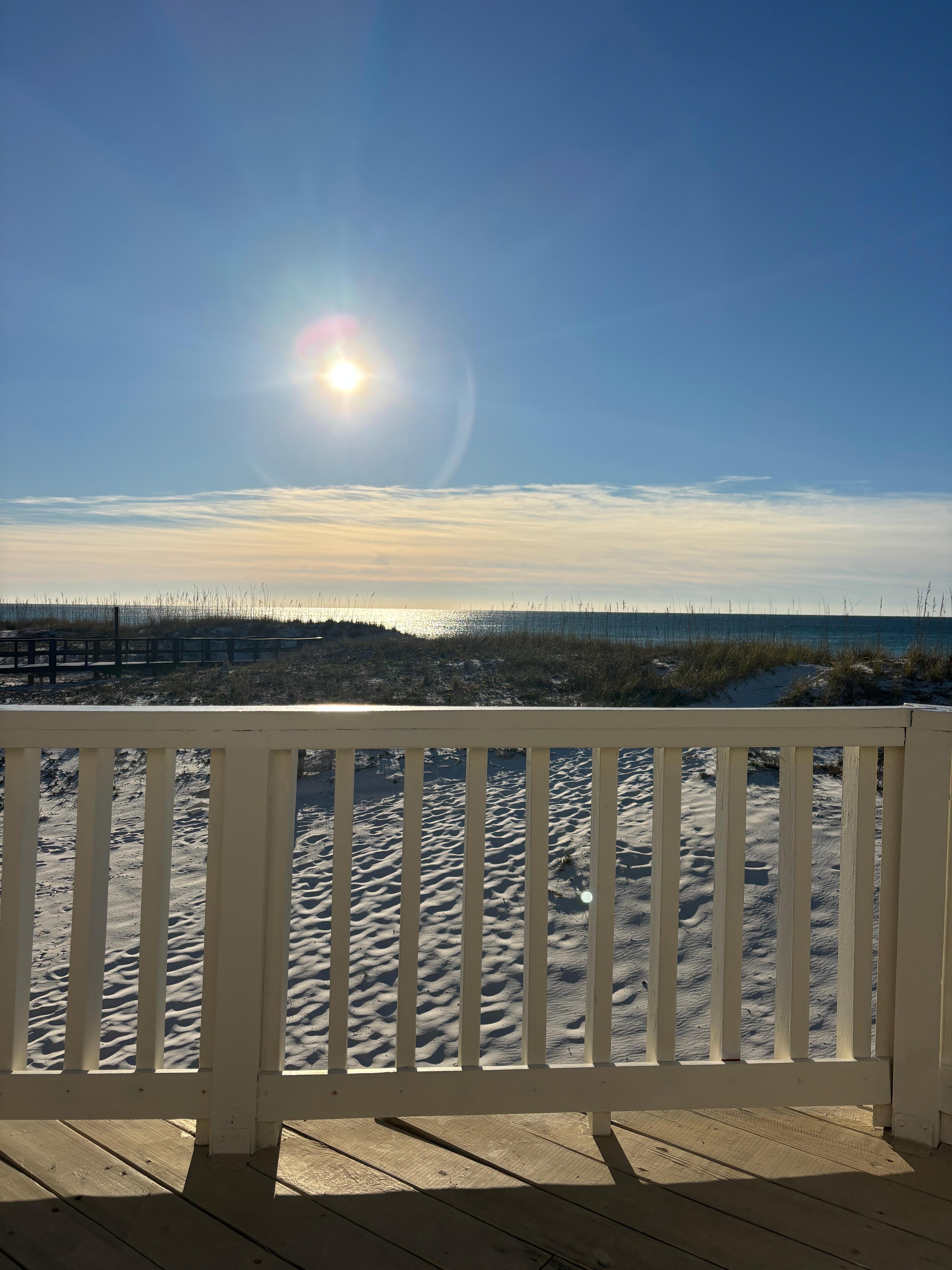 Next to the kitchen is a unique spiral staircase leading up to two separate bedrooms. The first bedroom has 1 king bed with a queen sleeper sofa just on the outside of this bedroom. The other bedroom has a twin over twin bunk bed and a twin over full bunk bed. These rooms share a spacious bath with a tub/shower combo and doors opening onto an upper level deck with amazing views. This upper level deck has stairs leading down to the main level deck, with another staircase leading straight down to the sugar white sands.