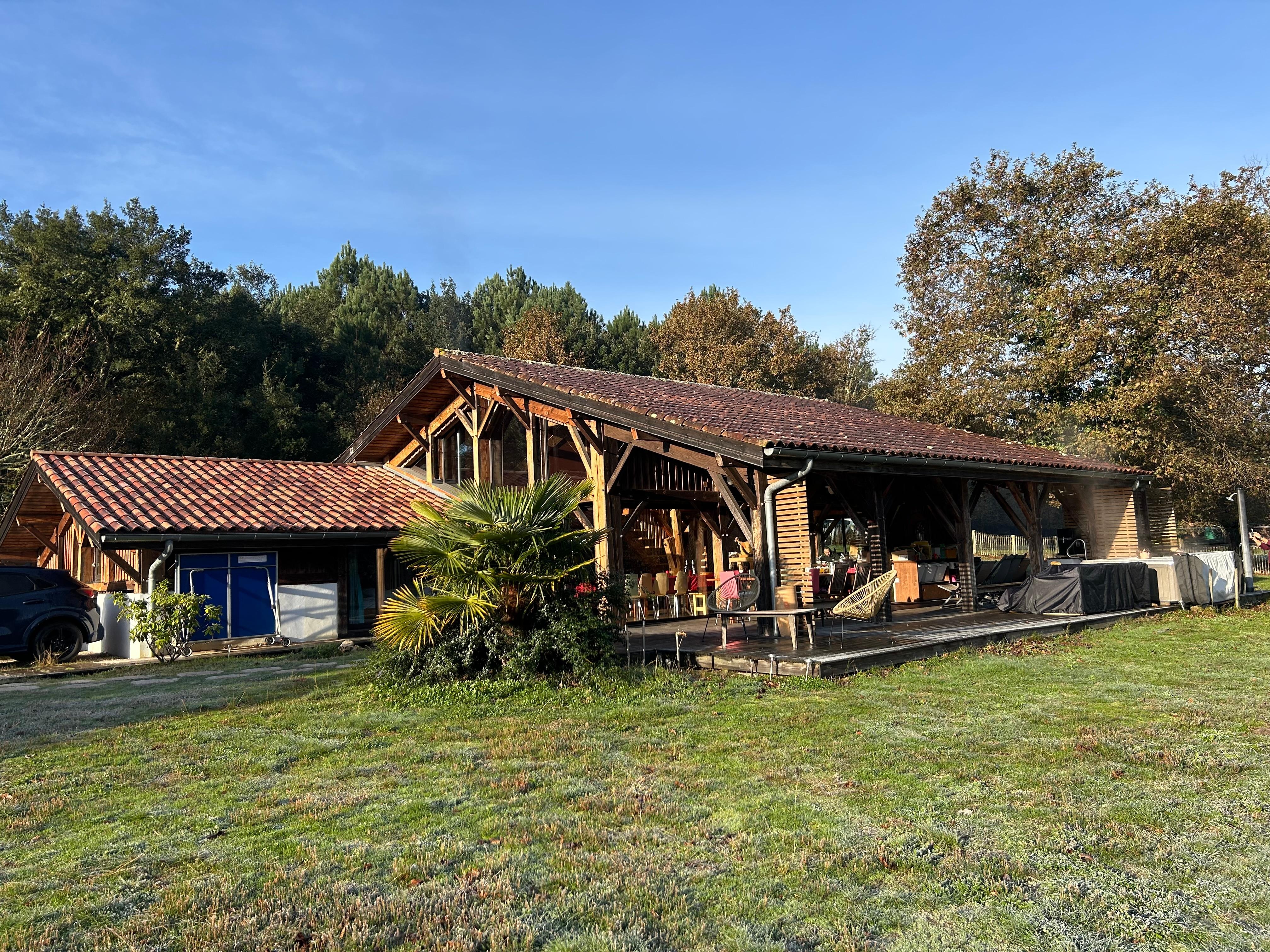 In a former typically Landes district, leaning against the pine forest and sand dunes, this recent wooden house, breathes calm, nature and the big moor, near the ocean and its wild beaches at a loss of view, of the lake of Léon and of the magnificent natural reserve of the current of Huchet, of the big forest and its cycle and pedestrian tracks. With its large living room and large terraces which overlooks a 3 hectare park, this house is particularly suitable for meetings of family (ies) or friends, lovers of nature, walking, cycling, kayaking, beach and ocean