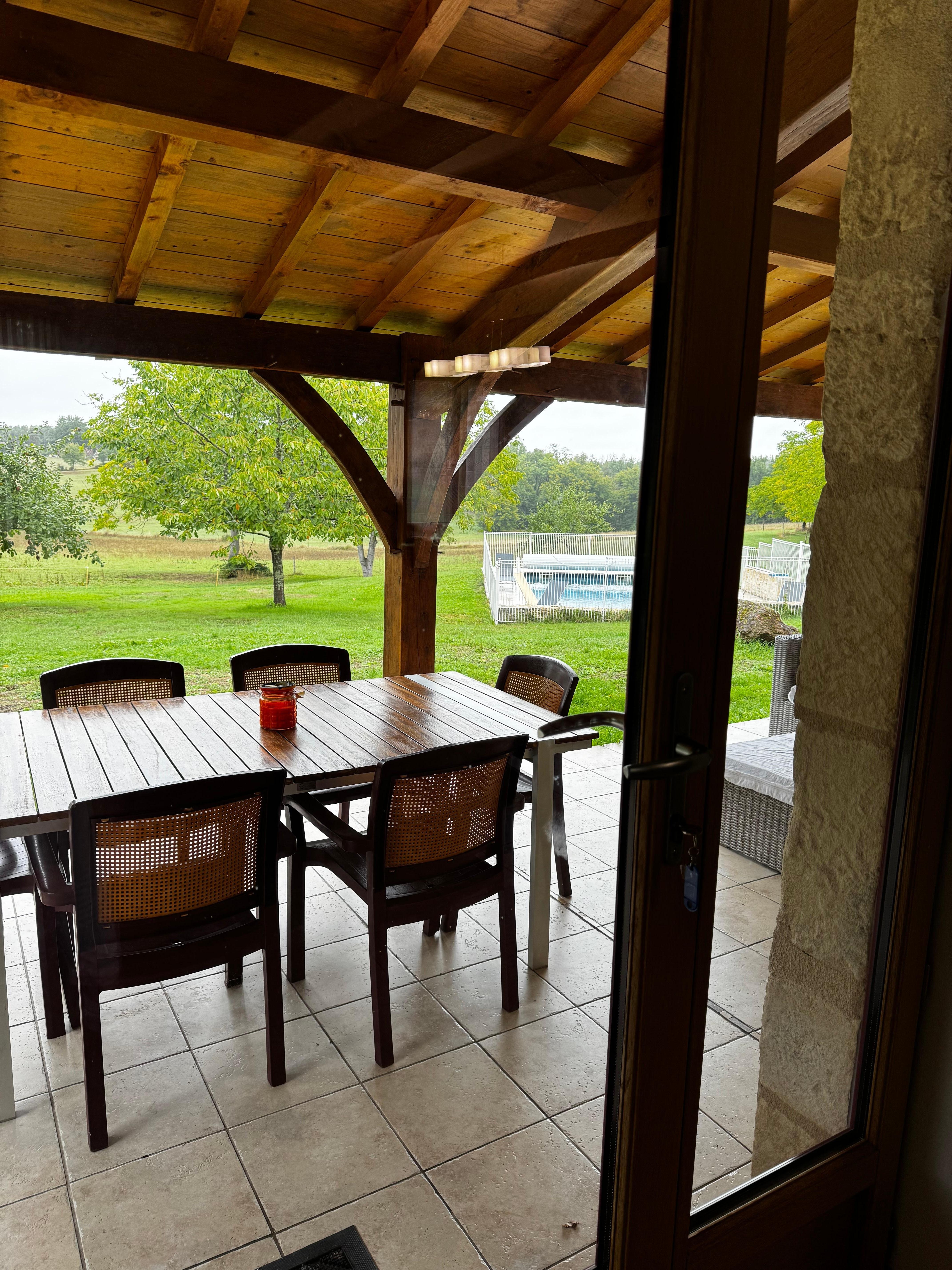 Beautifully restored stone farm building with all facilities for travellers. Away from the busy main towns with easy drives to the historic villages of the Dordogne. Enjoyed the views from the outside eating area. Great swimming pool. Clear prior information about the contract, the bond and cleaning would be helpful. Would revisit if in the Perigord region.