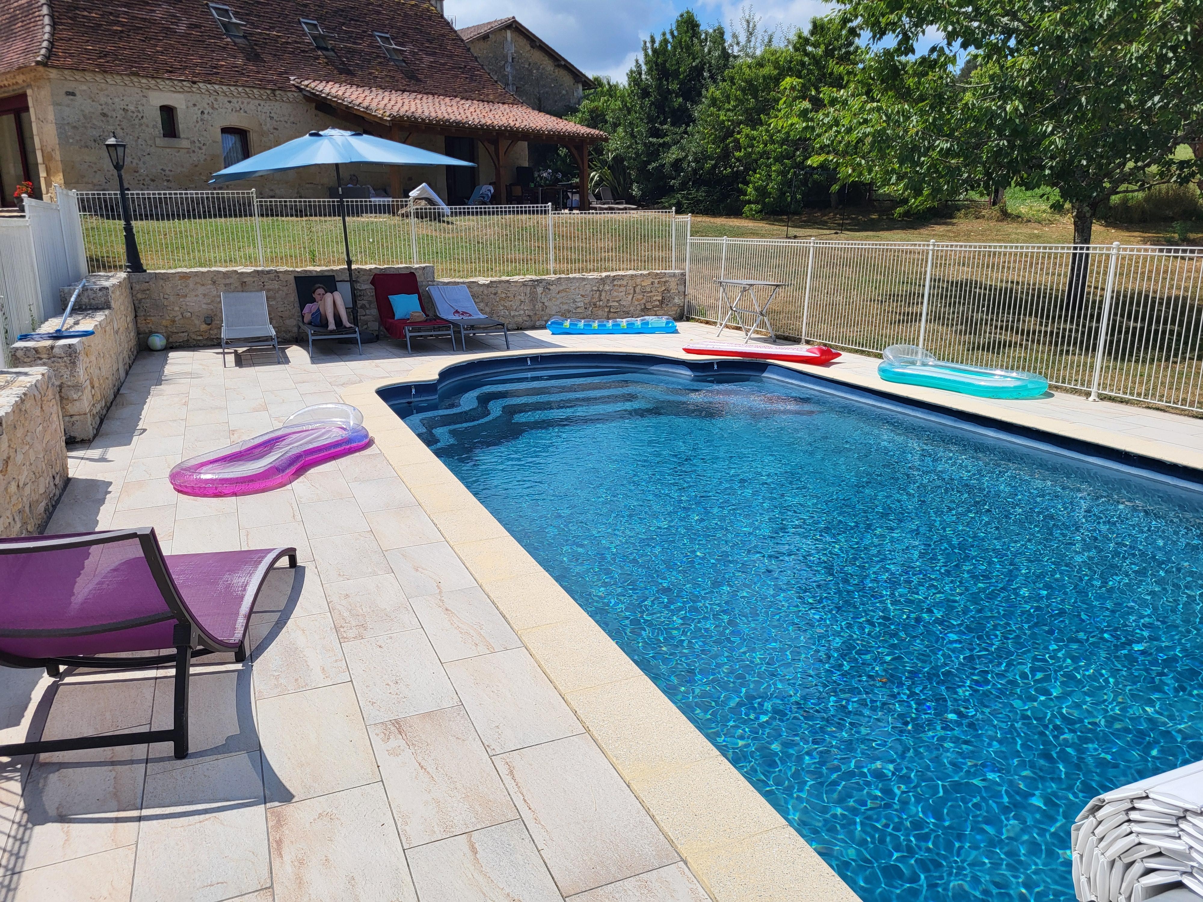 Raymonde and Frederic welcomed us on our arrival and showed us around the beautiful rustic house and grounds. The house is in a very peaceful area but only a 15 minutes drive to the restaurants and shops of Perigueux. The house is very well equipped with everything you need for a self catering holiday. There are two shower rooms, two toilets and 3 comfortable bedrooms. The enclosed pool is a welcome addition in the hot weather. Raymonde’s beautiful horses are kept in a field close by and are tame and friendly. There are many beautiful villages within a hours drive that are well worth a visit. We would recommend to anyone looking for a peaceful holiday in the Dordogne.