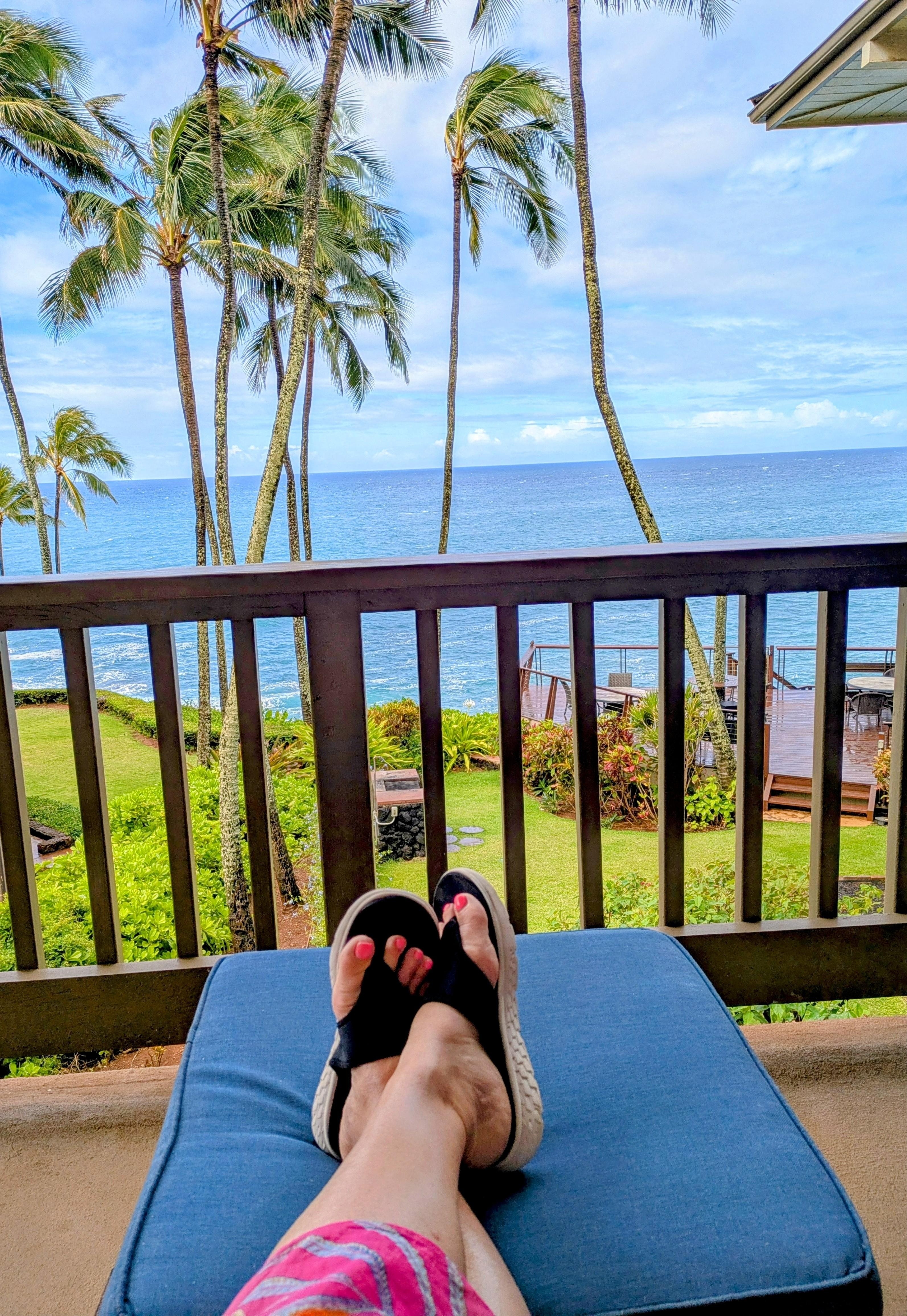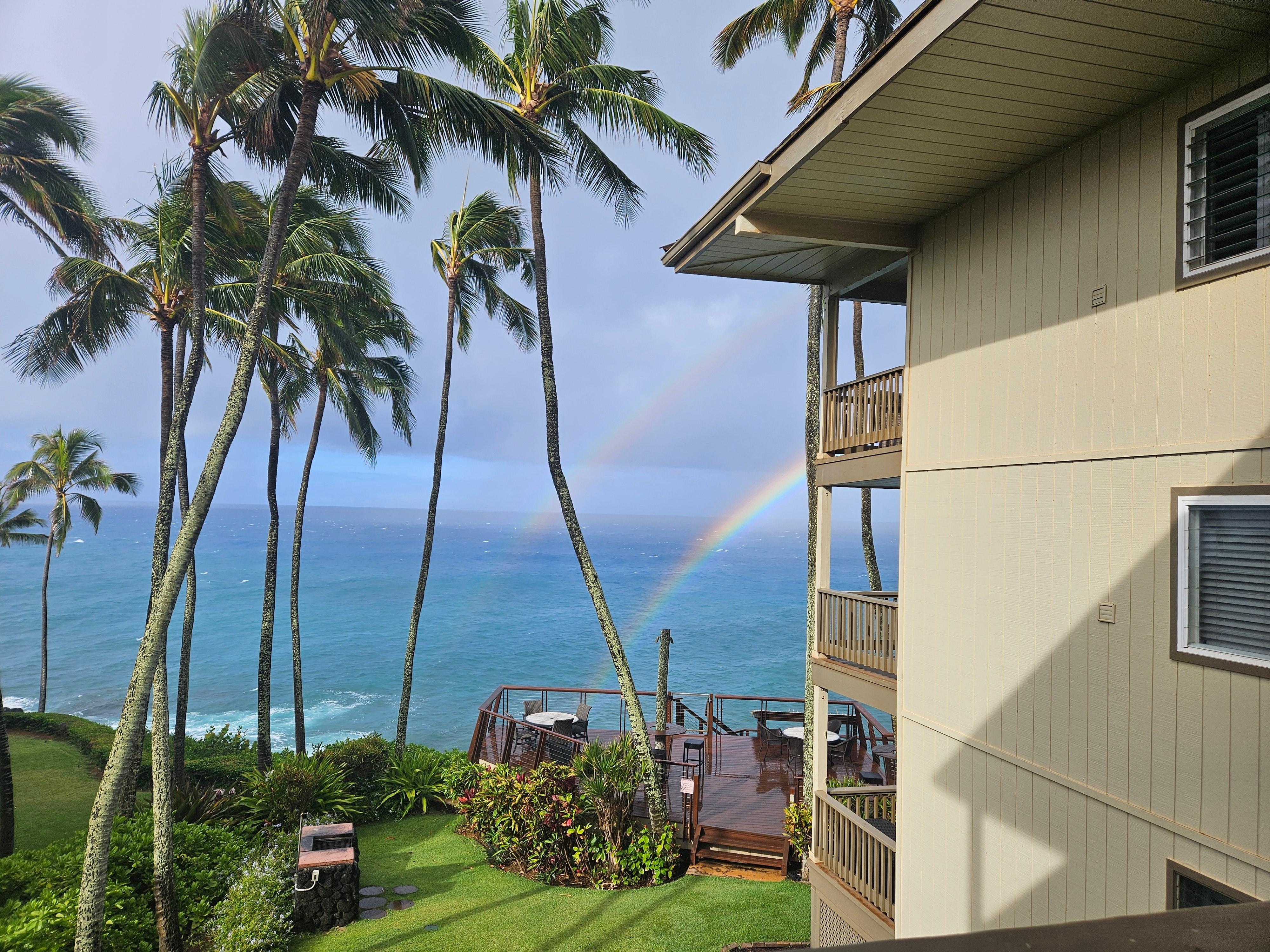 Palm trees and the beautiful blue waters of the Pacific Ocean greet you the second you open the front door of Poipu Palms 202.