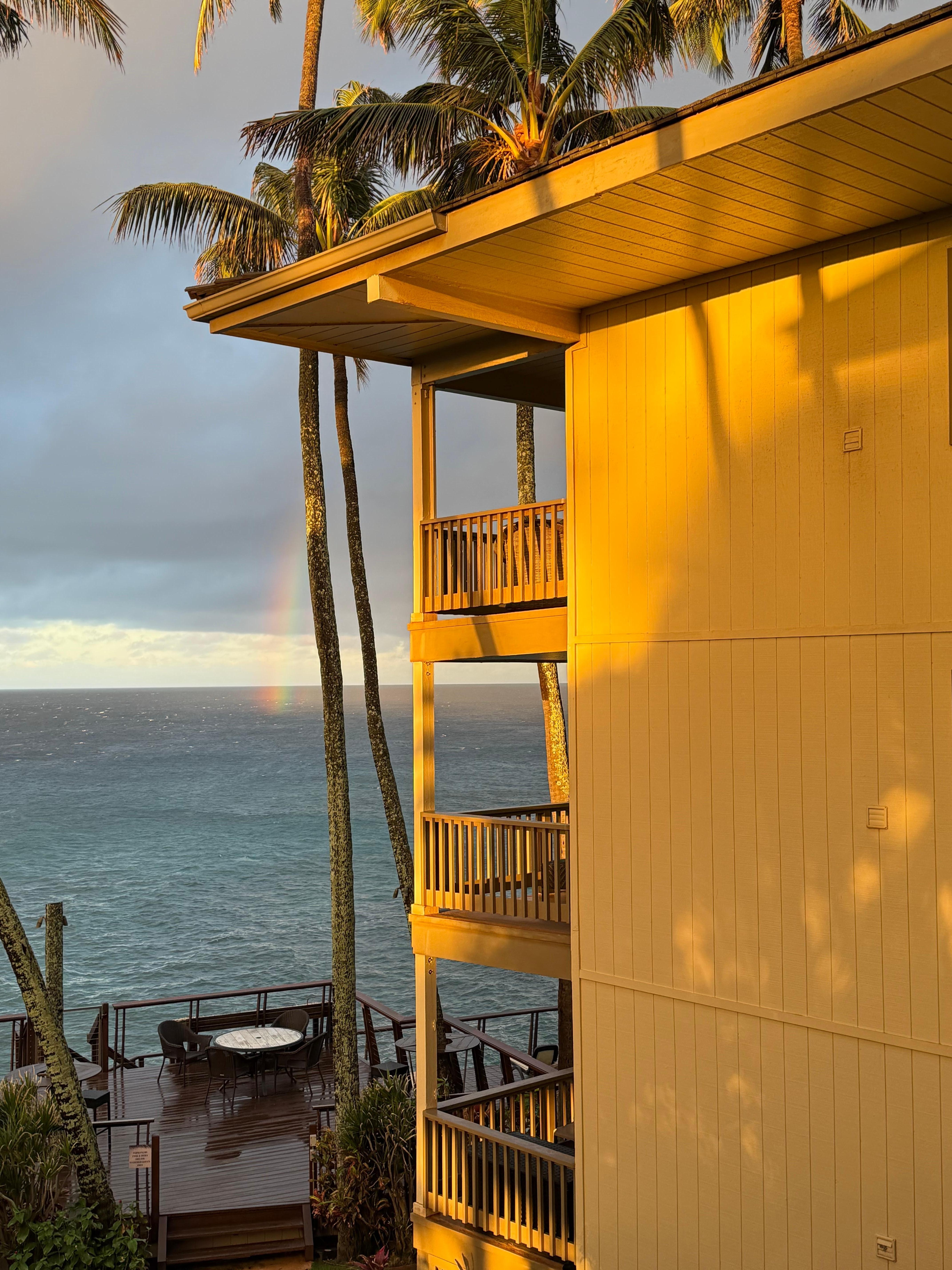 This place is lovely. The view is beautiful. The kitchen is well appointed with coffee maker, coffee, spices, full set of dishes and utensils stainless steel appliances and a great view. The balcony is large and inviting. We heard the ocean every night from the bedroom. Kauai was a great island in and of itself. We will be back.