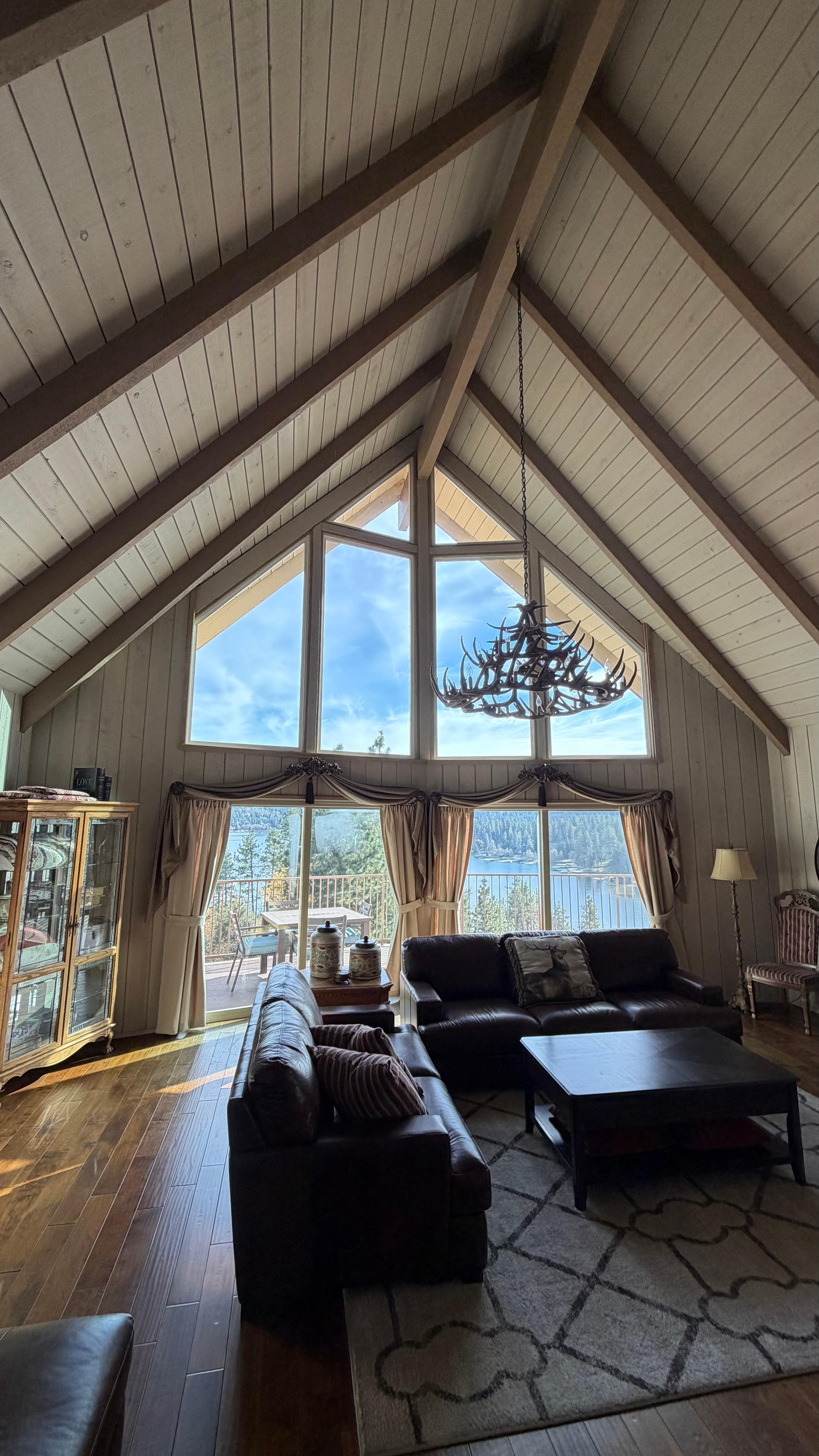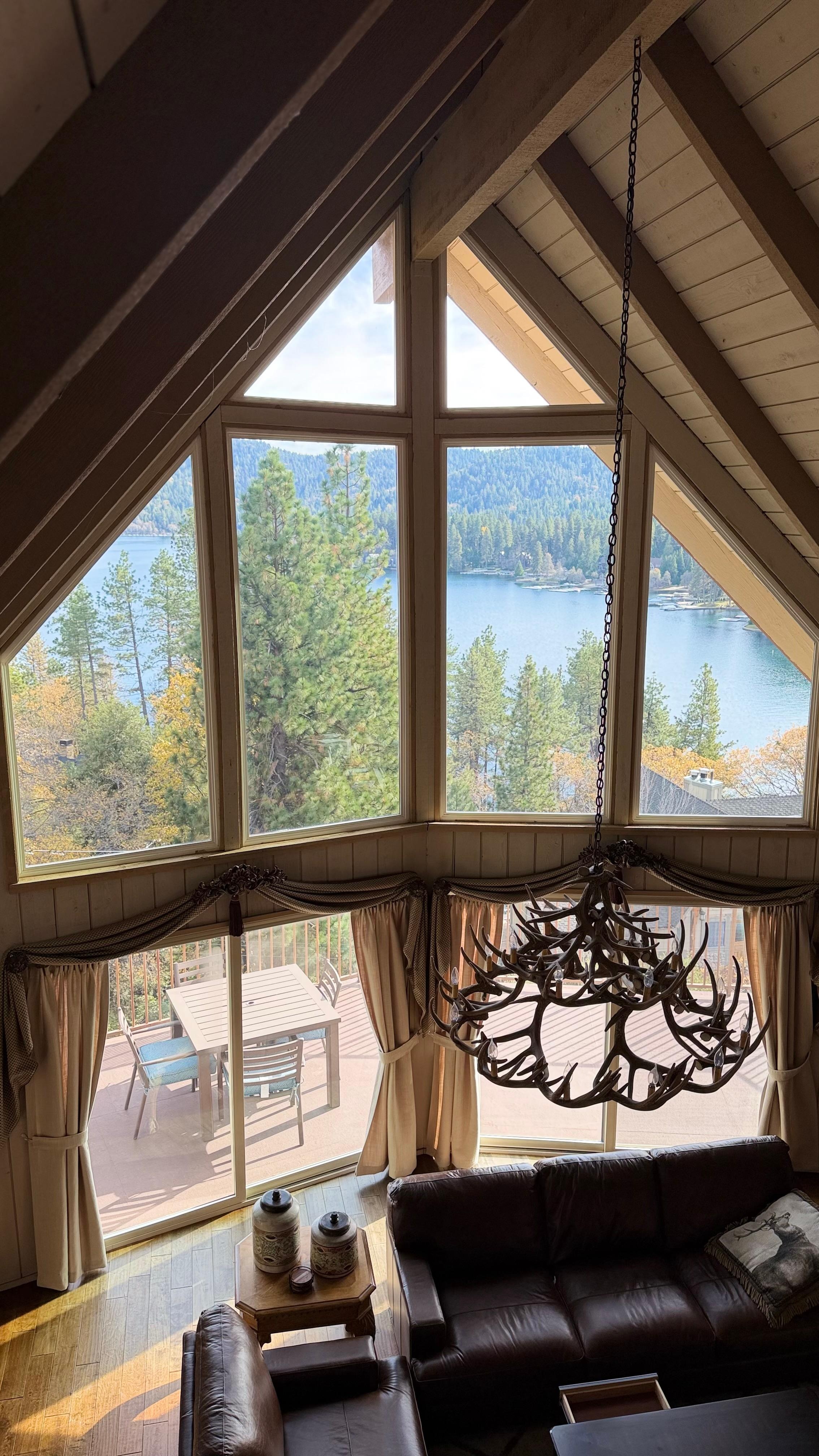 Panoramic views of the lake called us to purchase this property. The warm and cozy interior made us want to keep it.