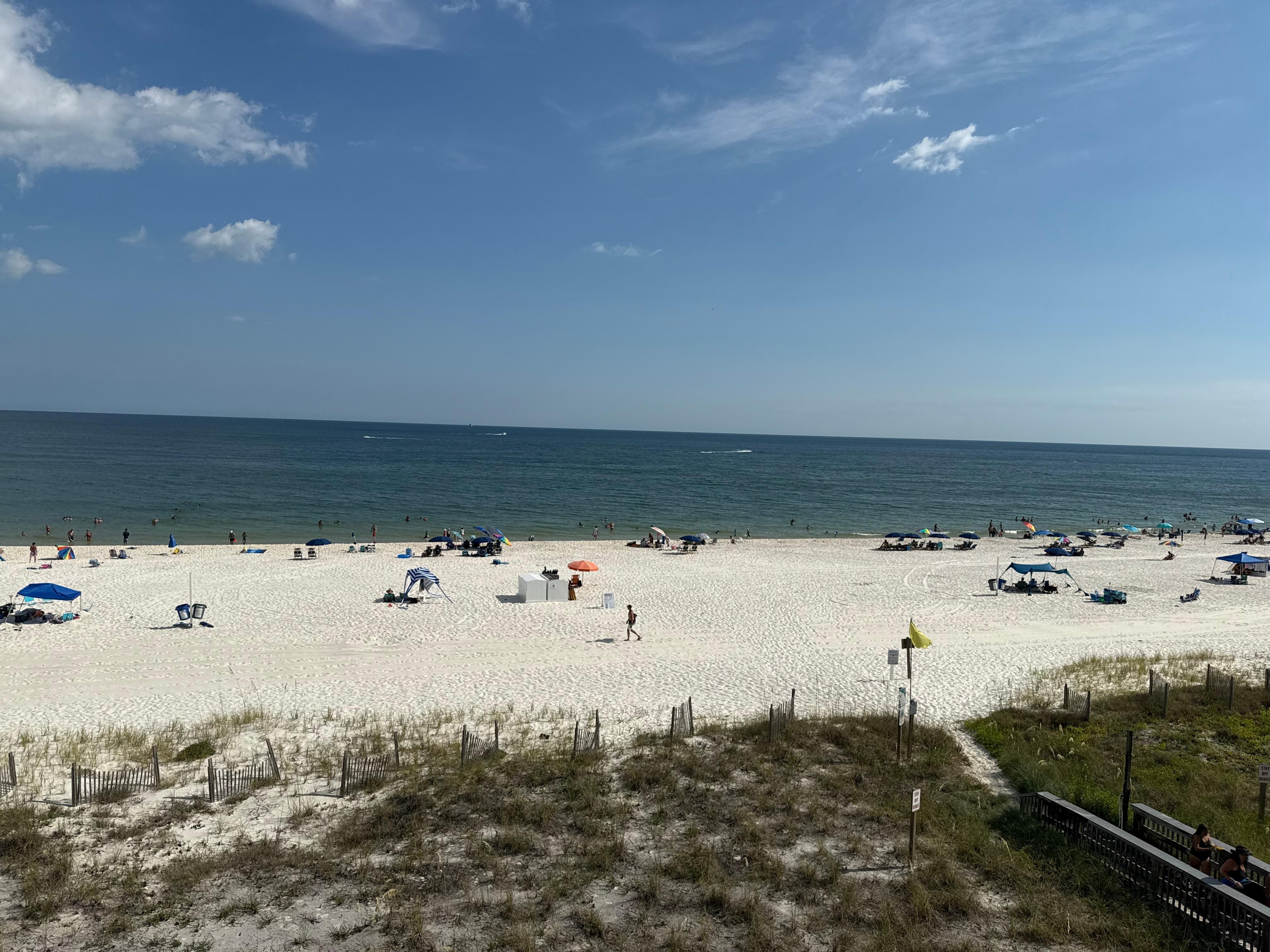 Our 2 bedroom, 2 bath unit is on the 4th floor of a low density complex. The beach view is grand from our balcony… right in front of you as you walk out the door! This complex is one of Gulf Shores’ most popular rental complexes, with affordable rates, convenience of walking to restaurants/shopping and direct gulf -front condos.